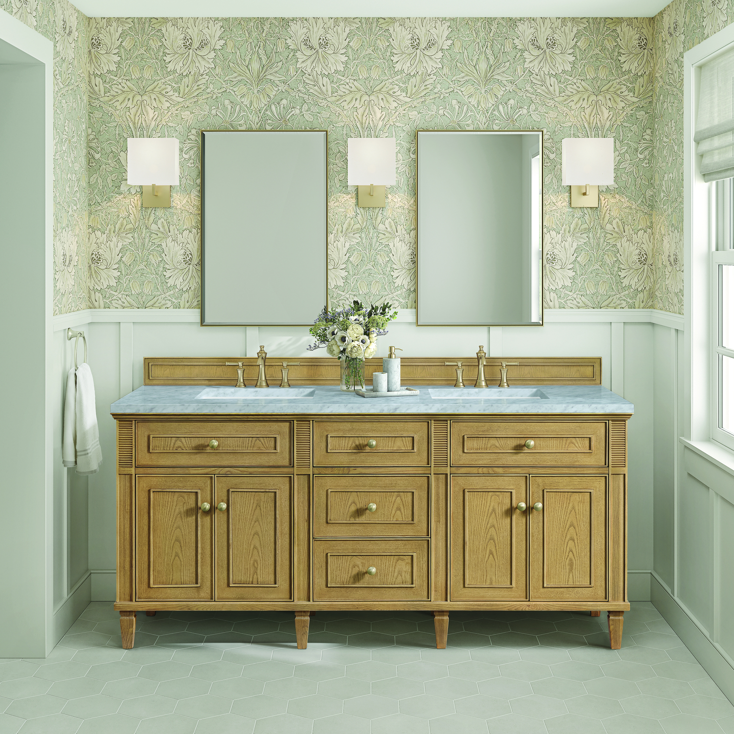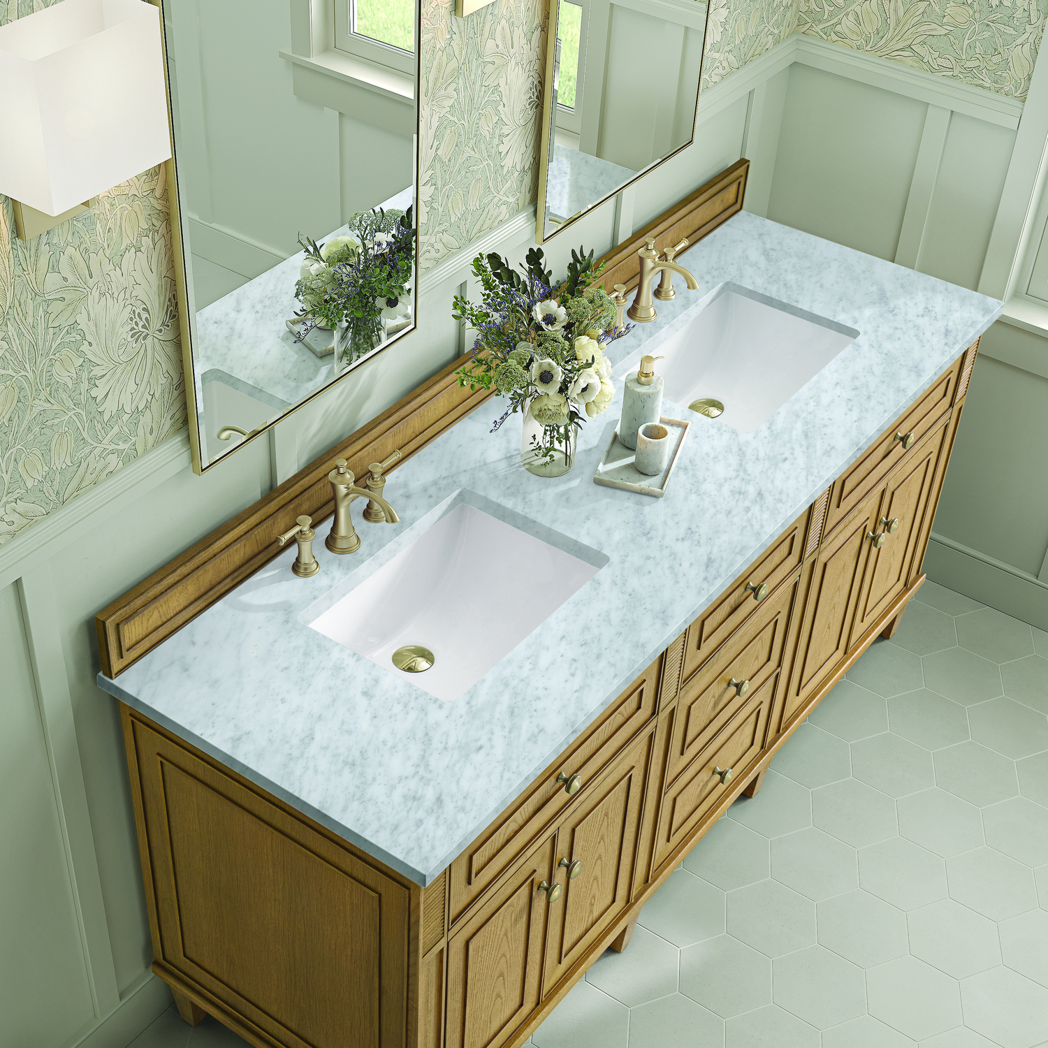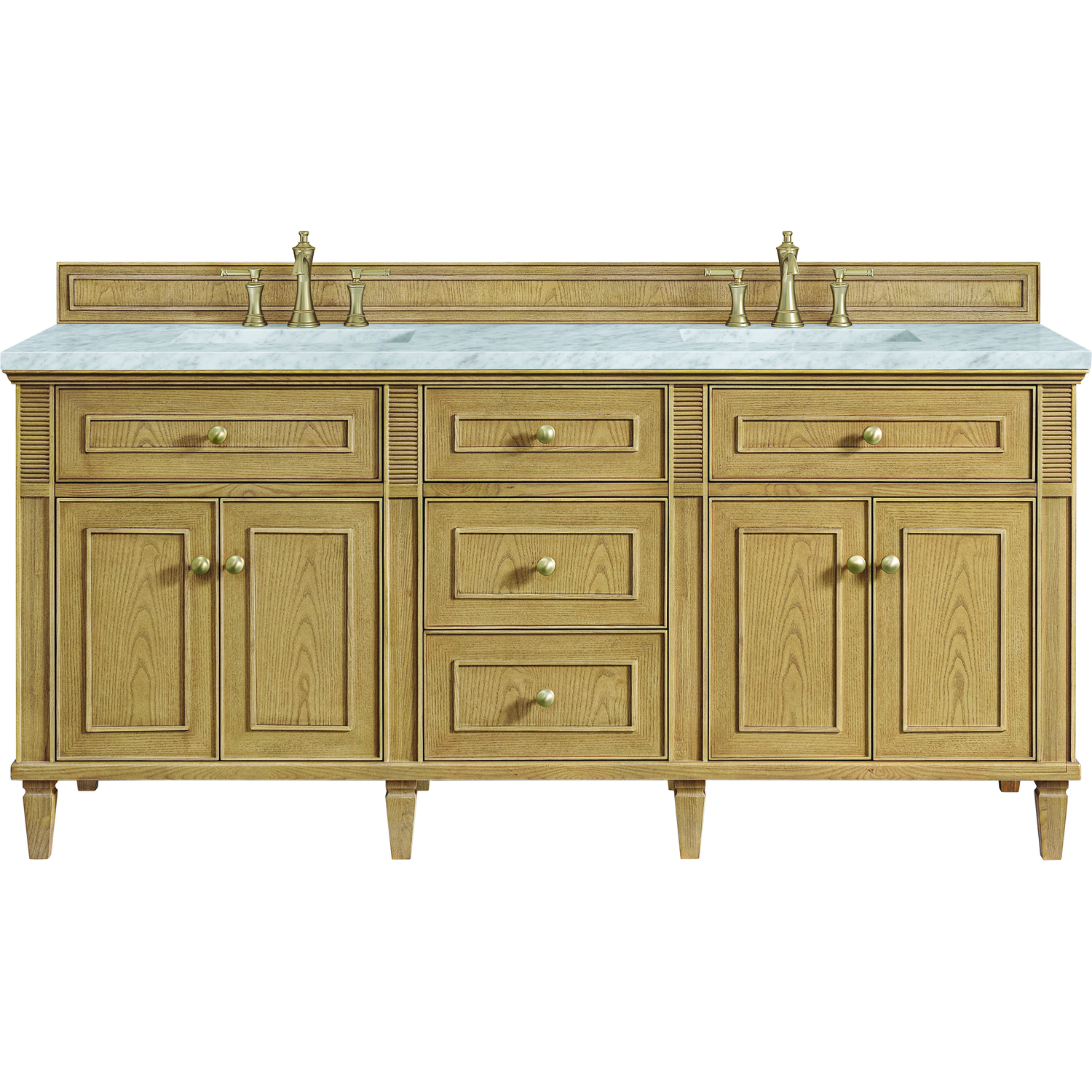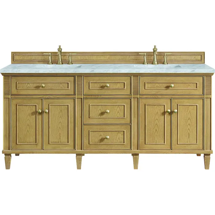 James Martin Lorelai 72 inch Double Vanity, Light Natural Oak w/ 3 CM Carrara White Marble Top, 840108972997, 424-V72-LNO-3CAR