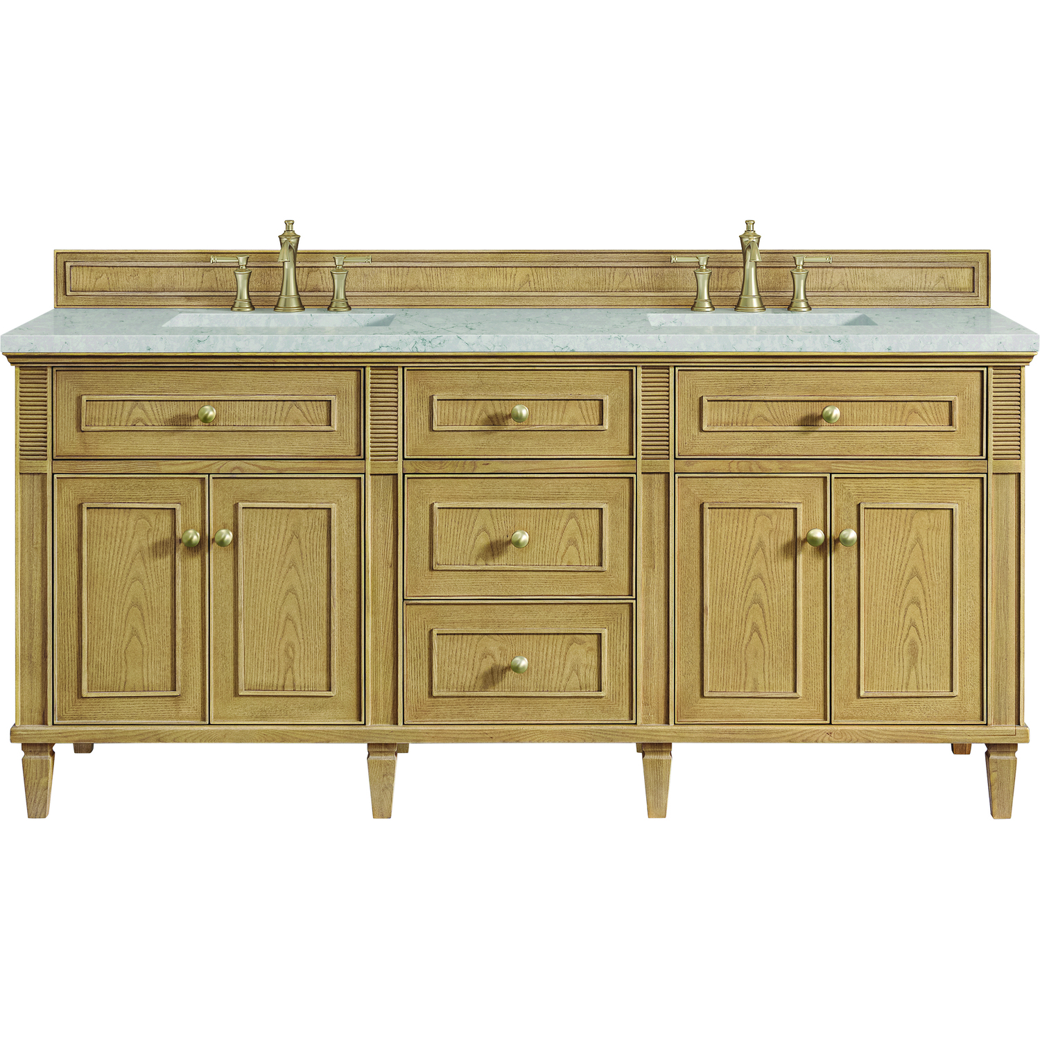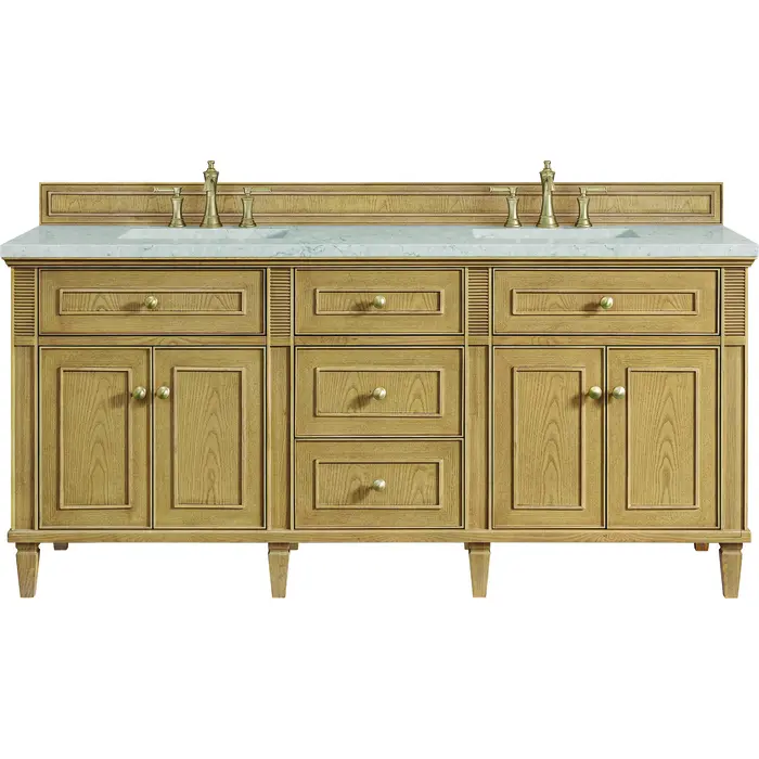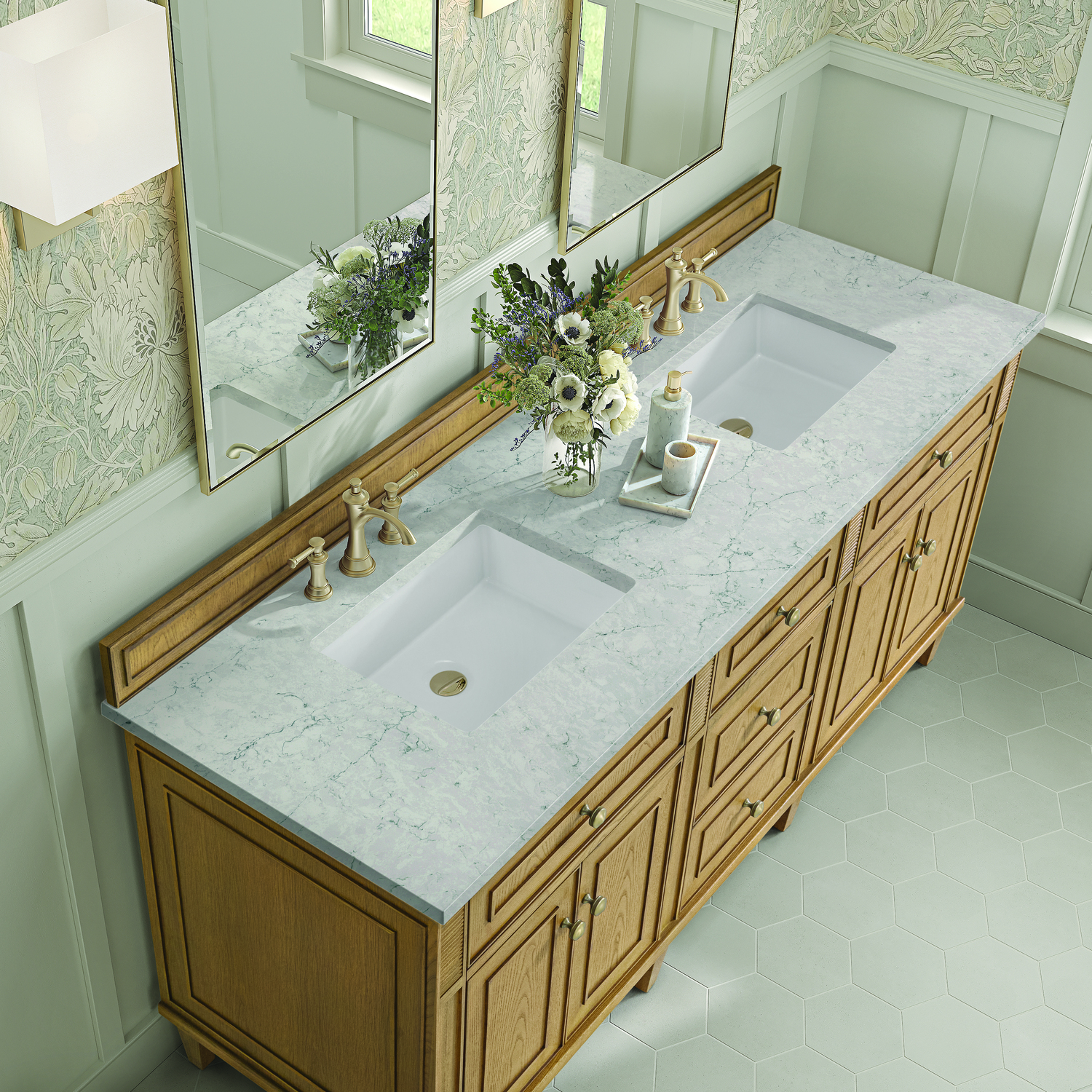 James Martin Lorelai 72 inch Double Vanity, Light Natural Oak w/ 3 CM Eternal Jasmine Pearl Quartz Top, 840108973017, 424-V72-LNO-3EJP