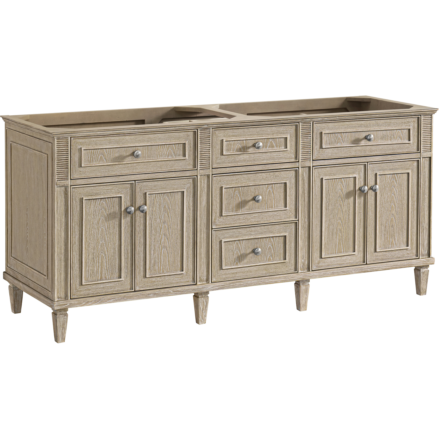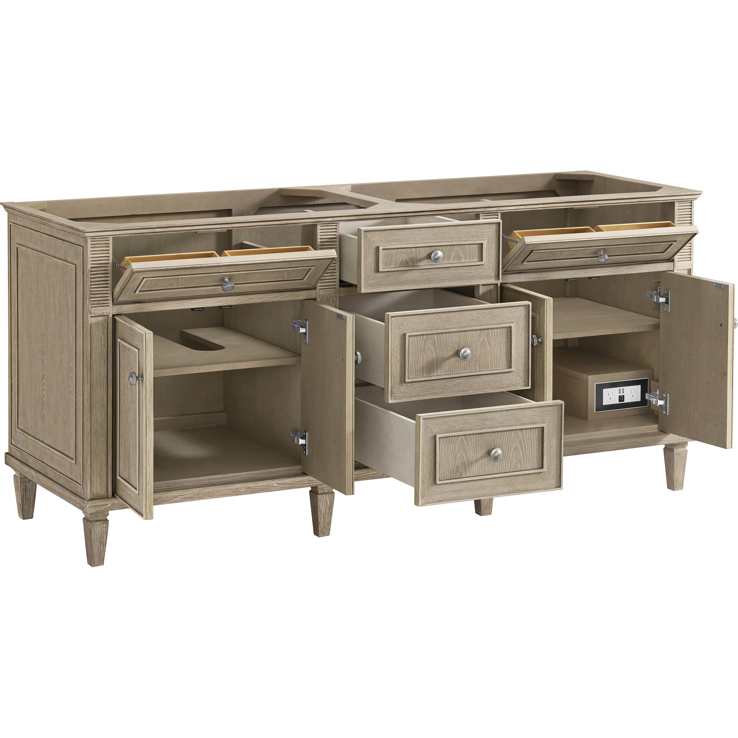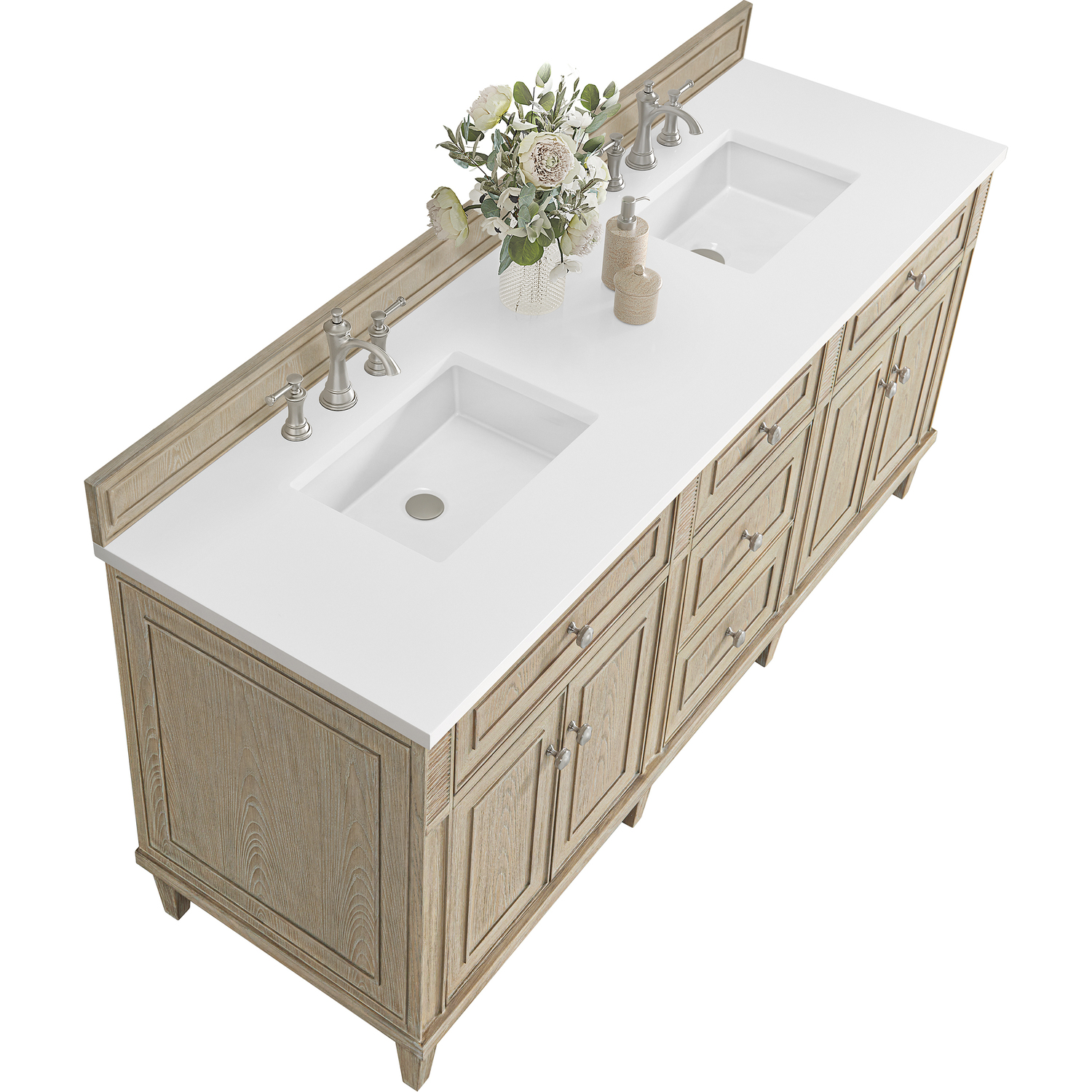 James Martin Lorelai 72 inch Double Vanity, Whitewashed Oak w/ 3 CM White Zeus Quartz Top, 840108973208, 424-V72-WWO-3WZ