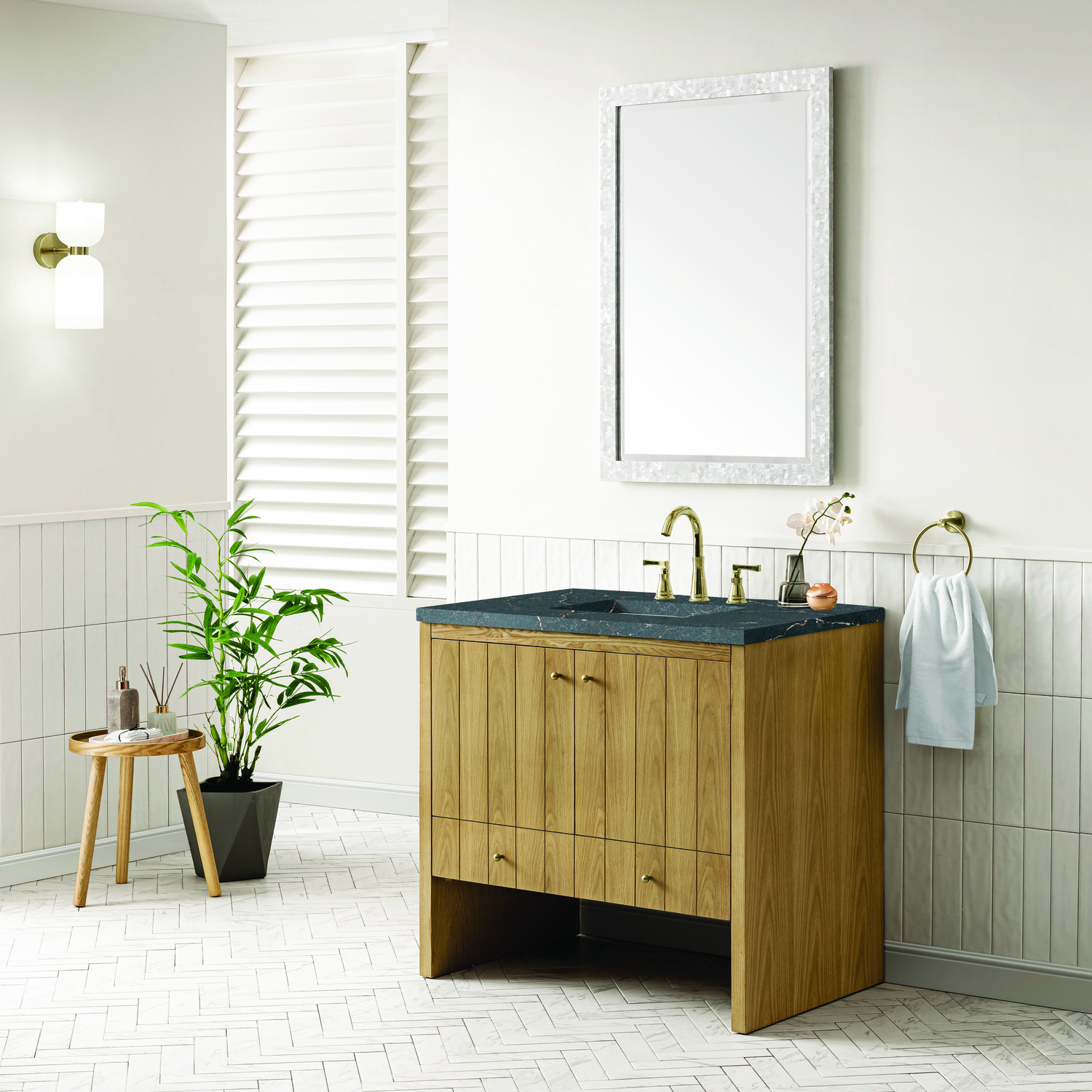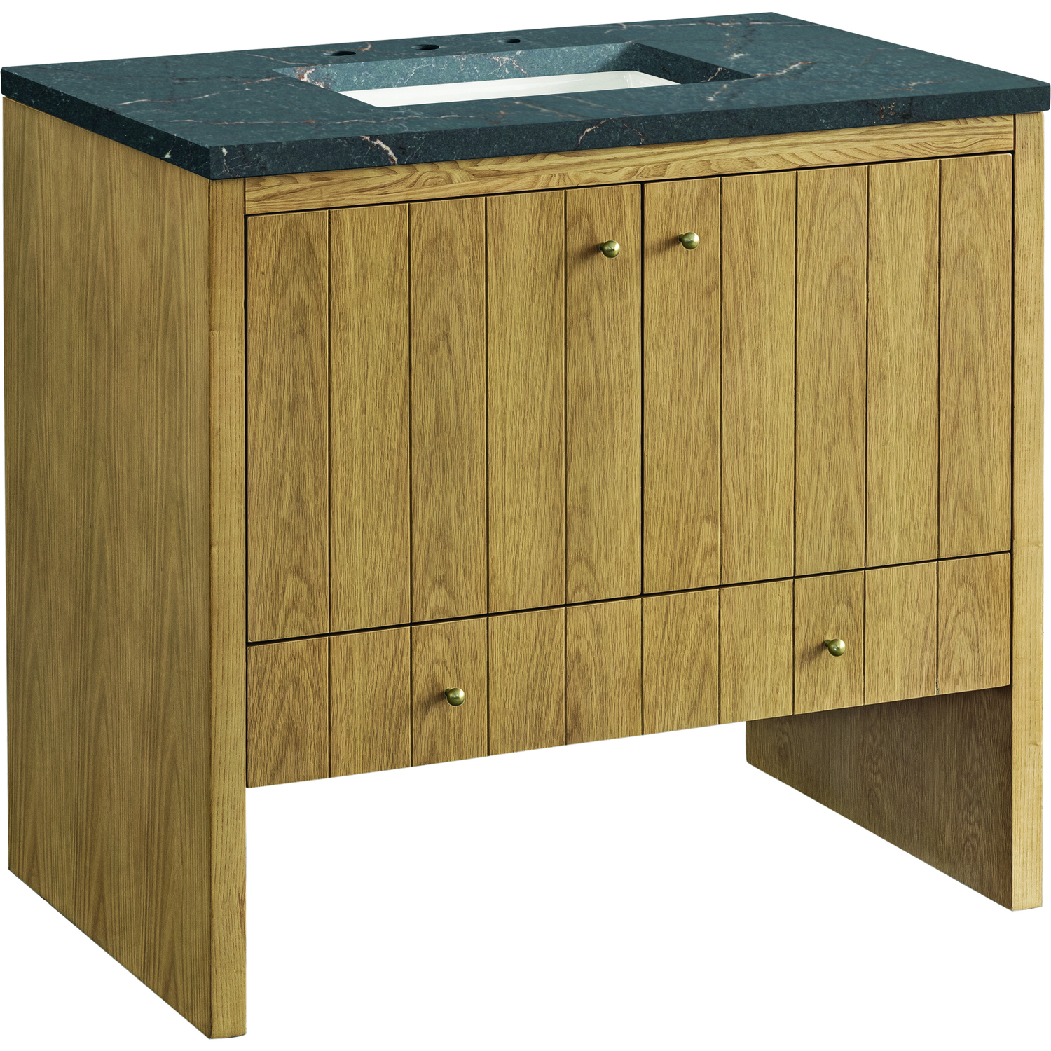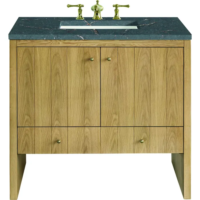 James Martin Hudson 36 inch Single Vanity, Light Natural Oak w/ 3 CM Parisien Bleu Top, 840108967856, 435-V36-LNO-3PBL