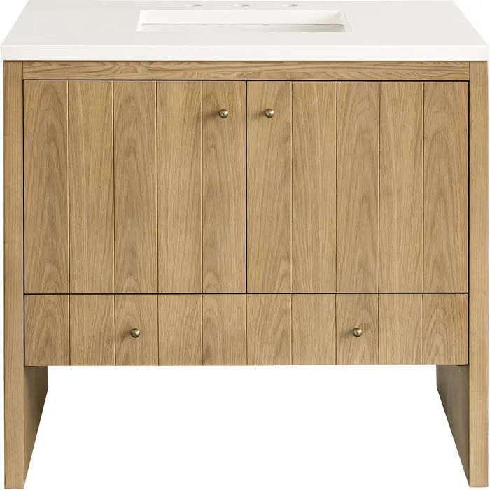 James Martin Hudson 36 inch Single Bathroom Vanity, Light Natural Oak w/ 3 CM White Zeus Top 435-V36-LNO-3WZ