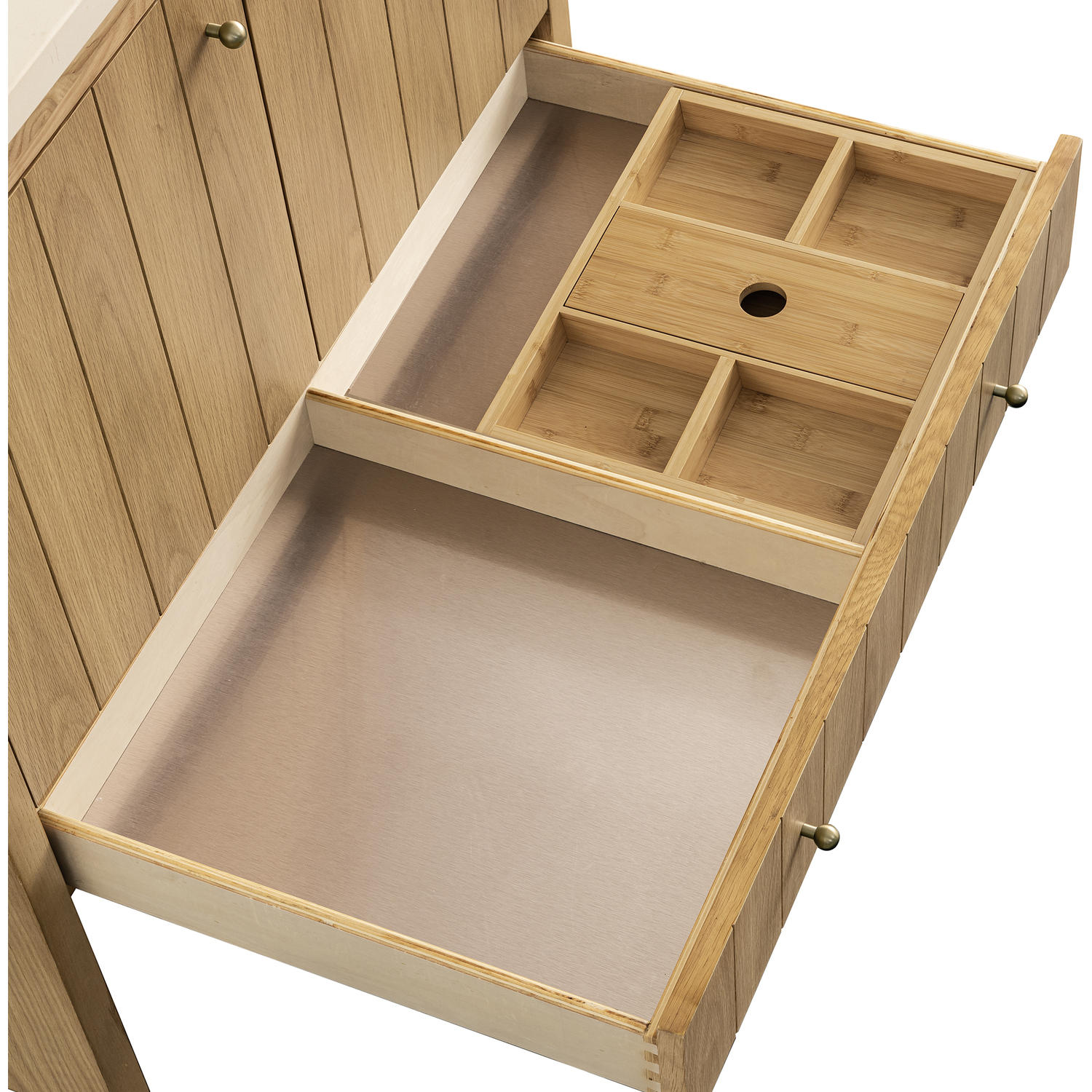 - Includes one removable Bamboo drawer organizer tray,