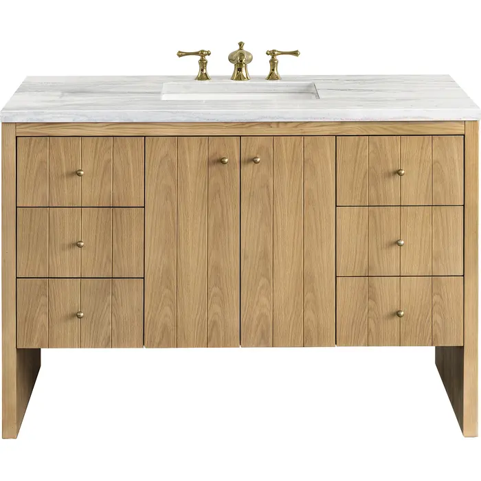 James Martin Hudson 48 inch Single Bathroom Vanity, Light Natural Oak w/ 3 CM Arctic Fall Top 435-V48-LNO-3AF