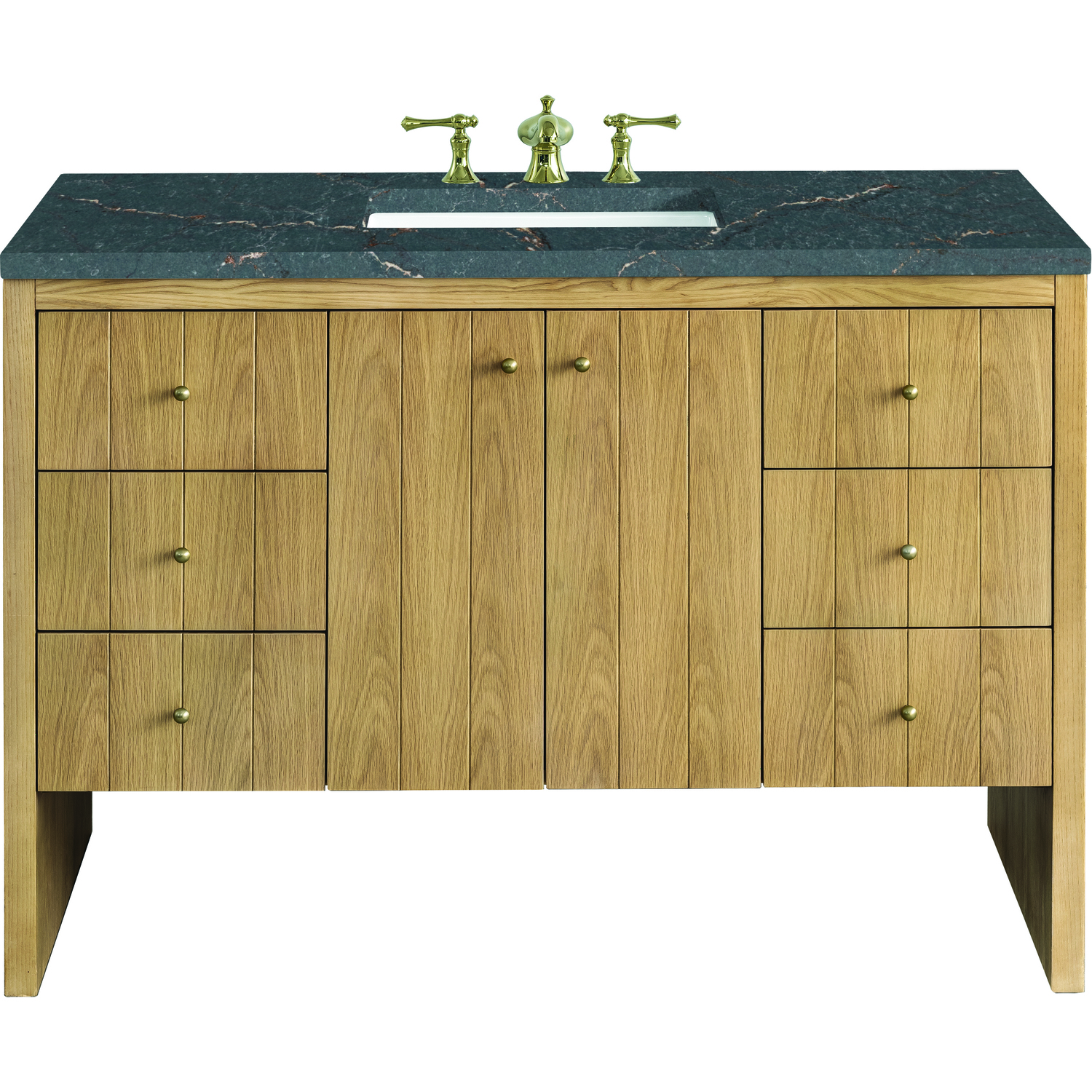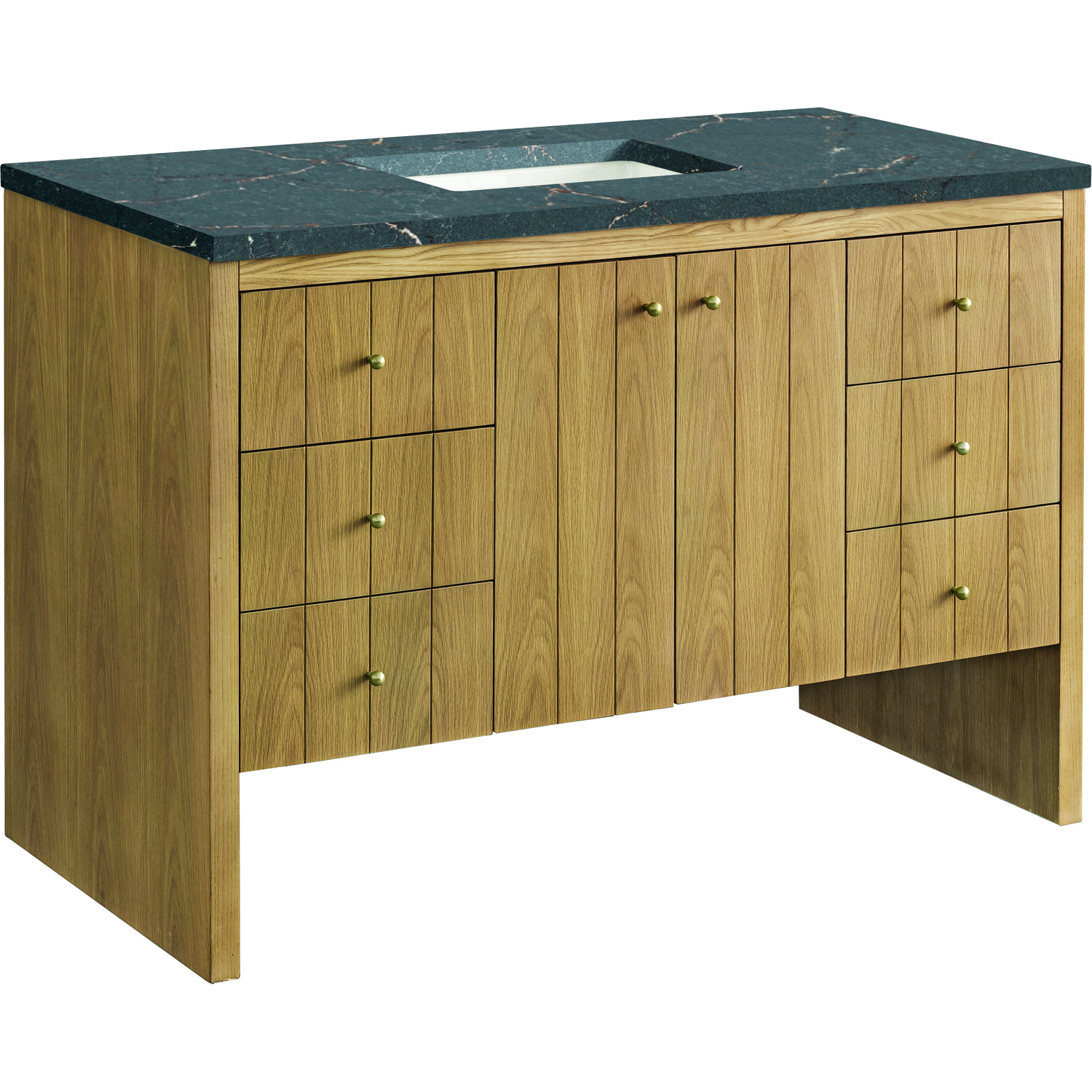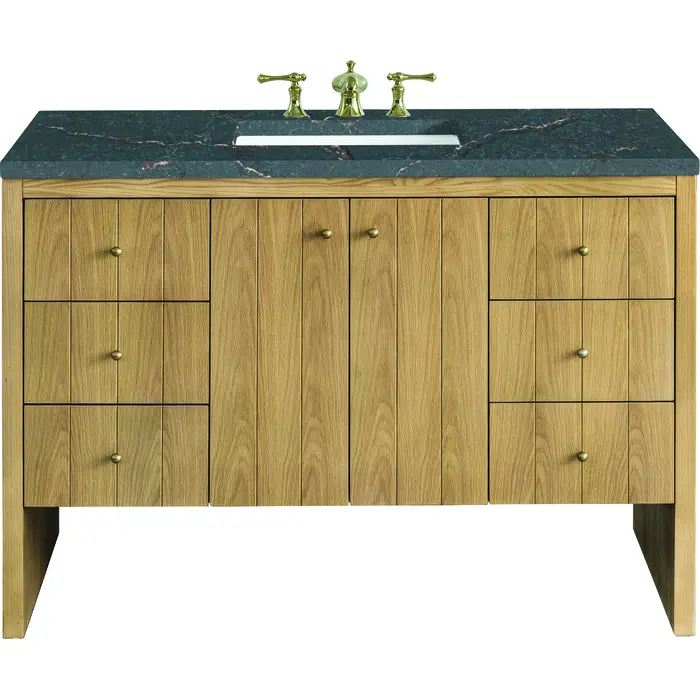 James Martin Hudson 48 inch Single Vanity, Light Natural Oak w/ 3 CM Parisien Bleu Top, 840108967863, 435-V48-LNO-3PBL