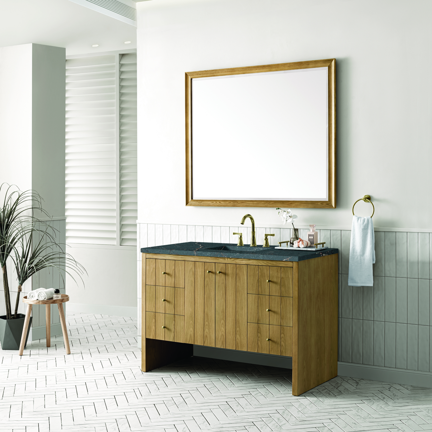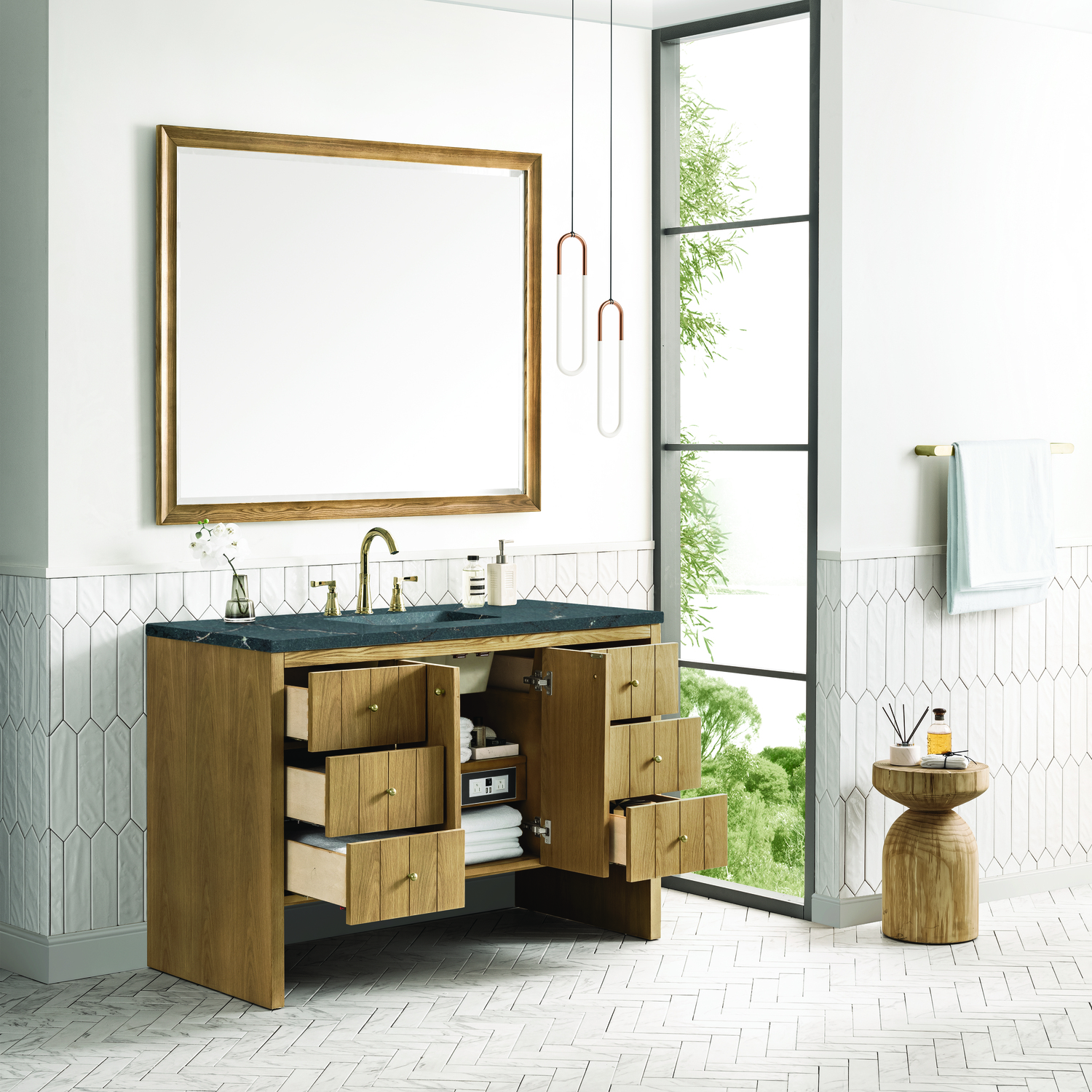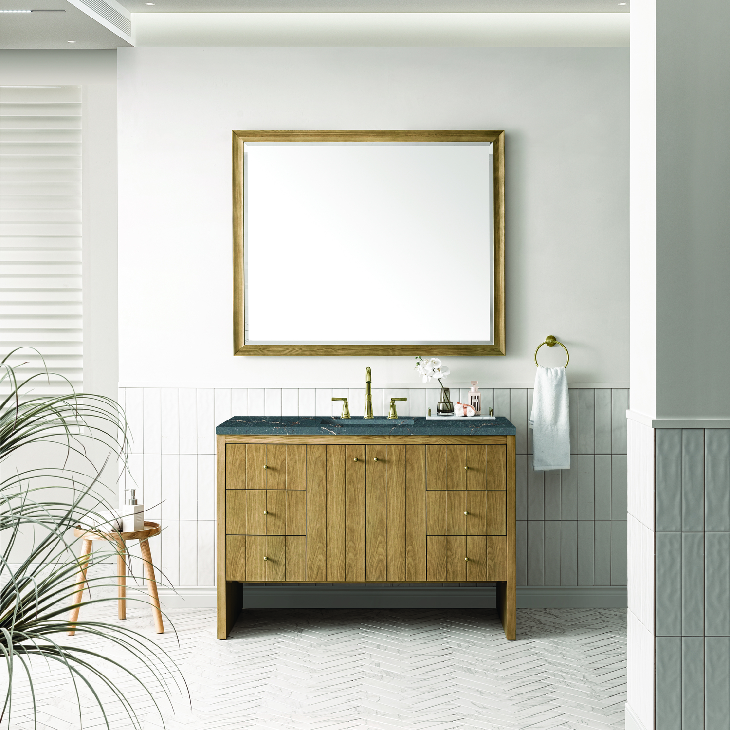 James Martin Hudson 48 inch Single Vanity, Light Natural Oak w/ 3 CM Parisien Bleu Top, 840108967863, 435-V48-LNO-3PBL