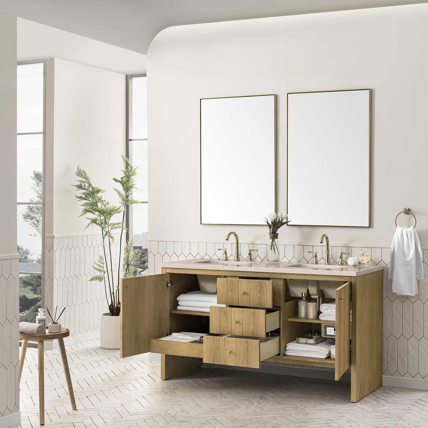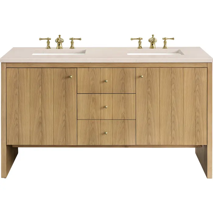 James Martin Hudson 60 inch Double Bathroom Vanity, Light Natural Oak w/ 3 CM Eternal Marfil Top 435-V60D-LNO-3EMR