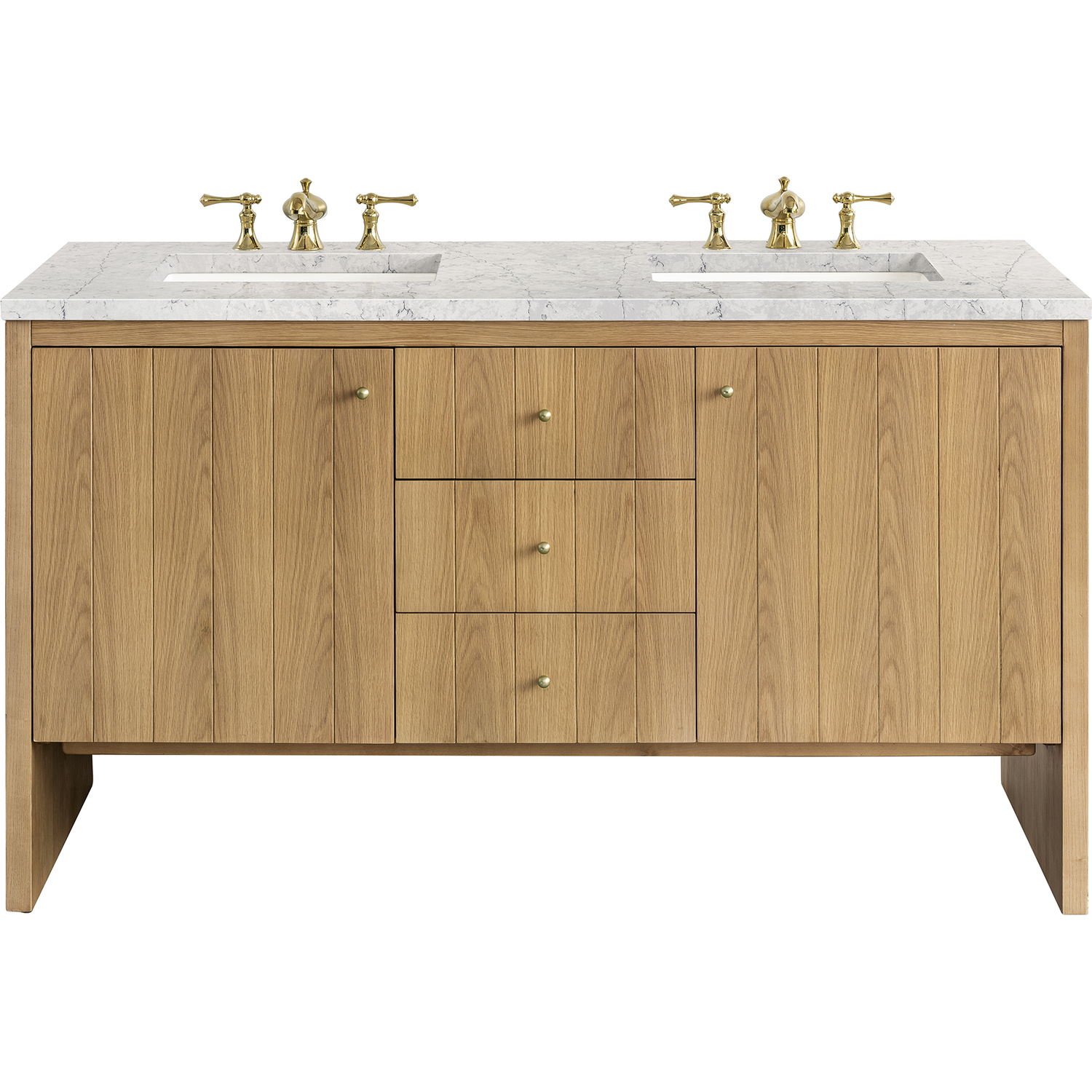 James Martin Hudson 60 inch Double Vanity, Light Natural Oak w/ 3 CM Eternal Jasmine Pearl Top w/FreePower Wireless Charger, 840467810725, 435-V60D-LNO-FEJP
