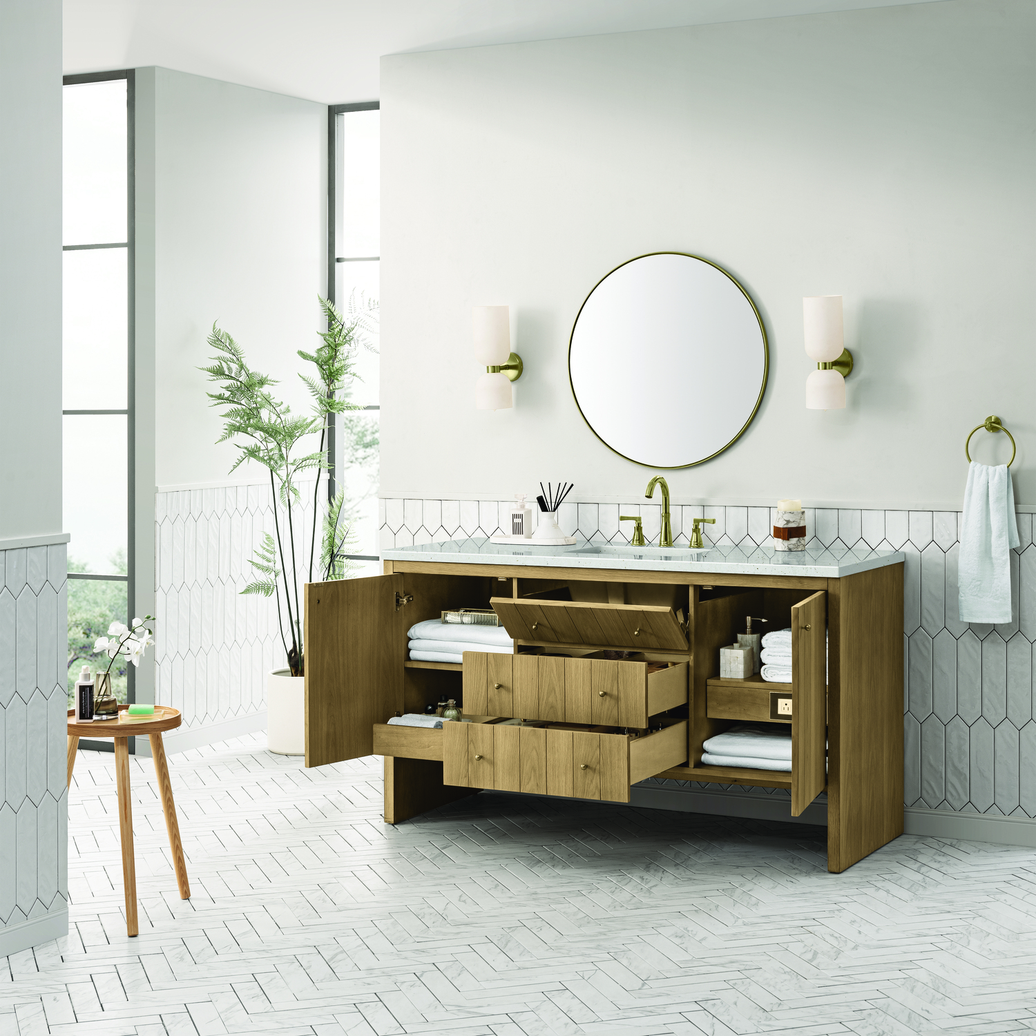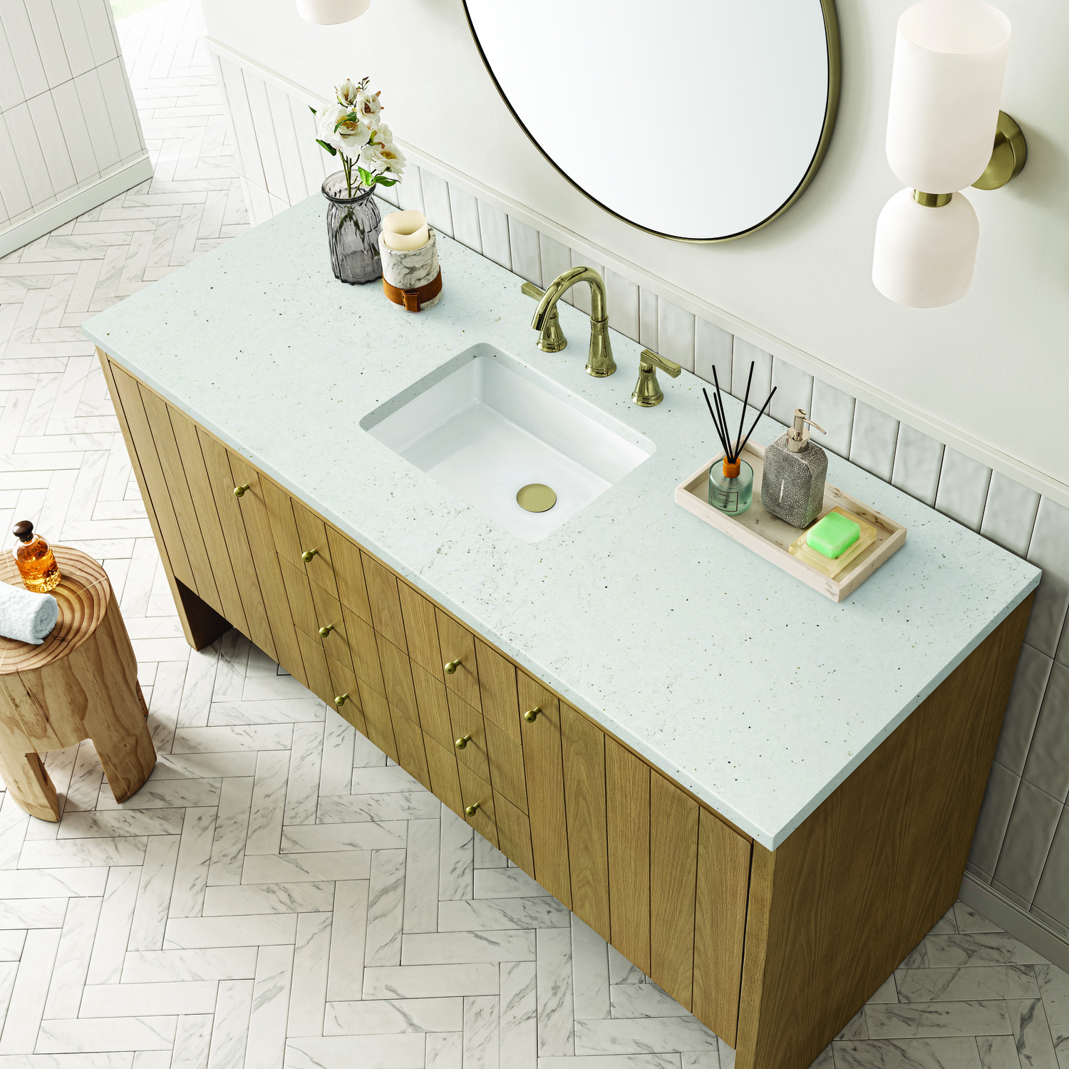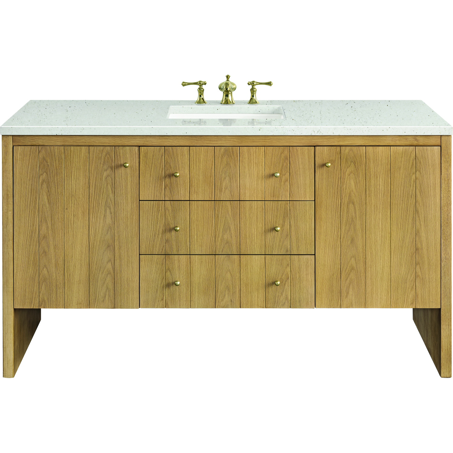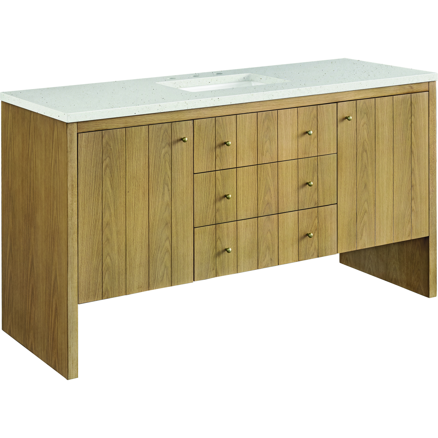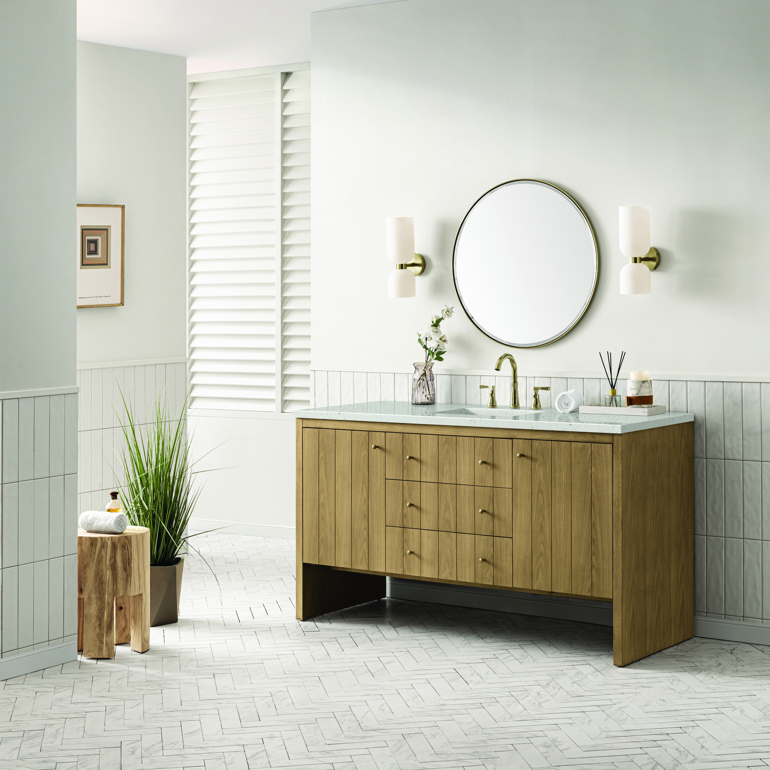 James Martin Hudson 60 inch Single Vanity, Light Natural Oak w/ 3 CM Lime Delight Top, 840108969447, 435-V60S-LNO-3LDL