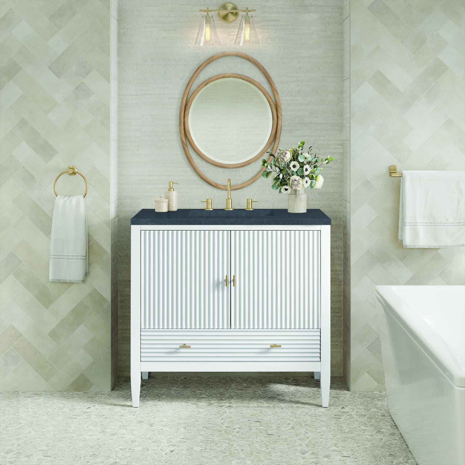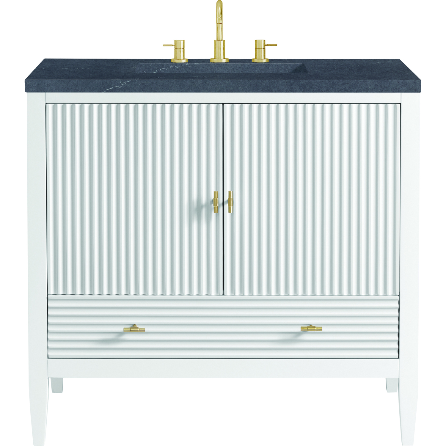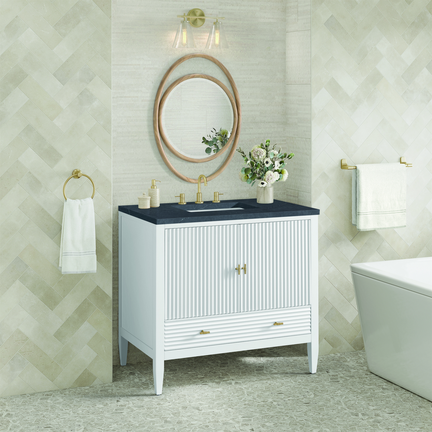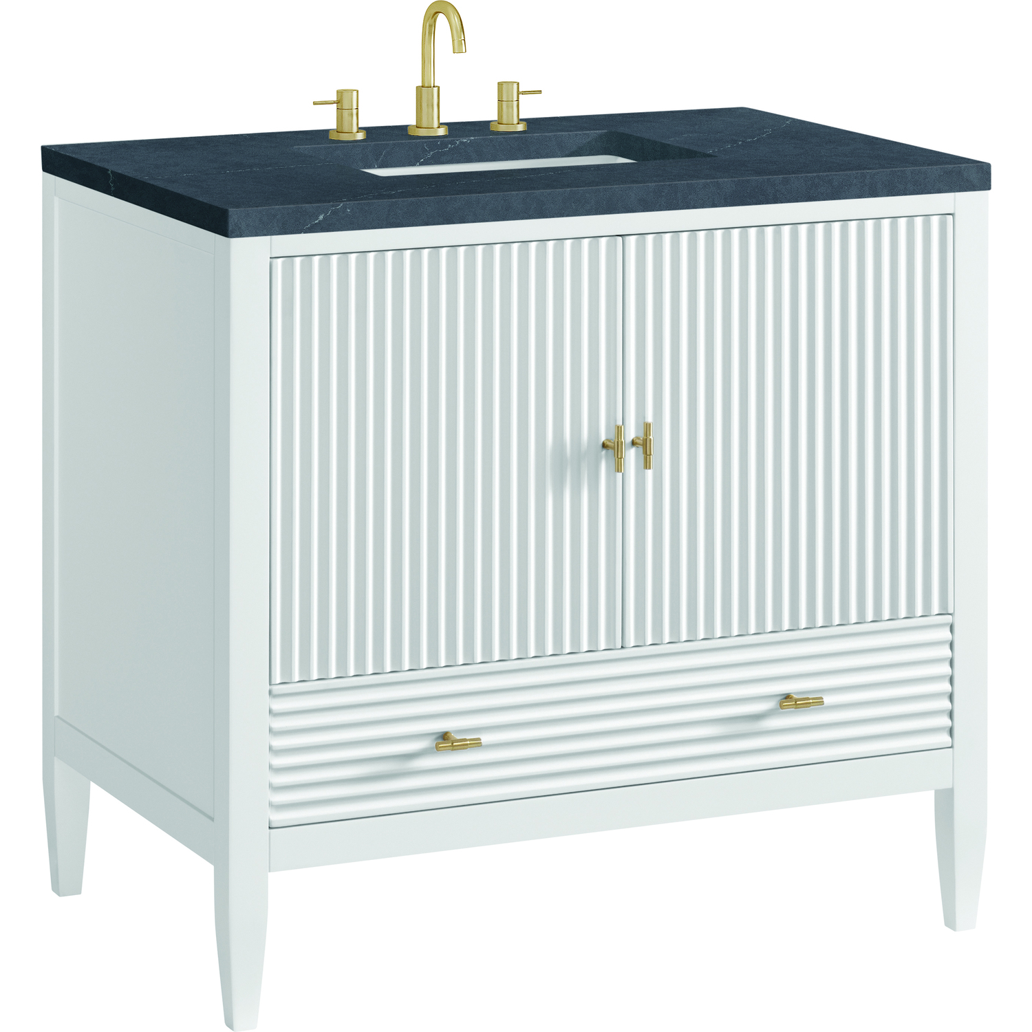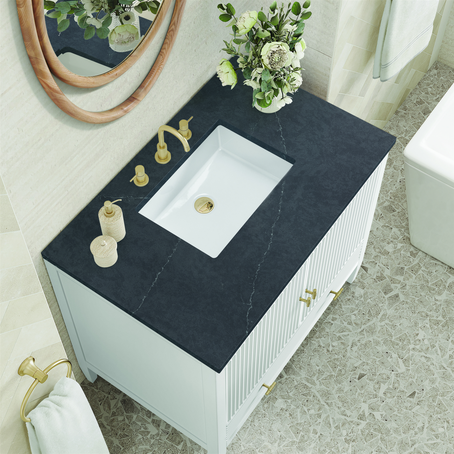 James Martin Myrrin 36 inch Vanity, Bright White w/ 3 CM Charcoal Soapstone Quartz Top, 840108973383, 485-V36-BW-3CSP