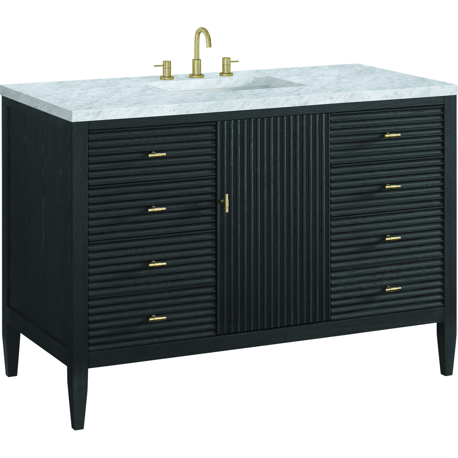 James Martin Myrrin 48 inch Vanity, Carbon Oak w/ 3 CM Carrara White Marble Top, 840108973796, 485-V48-CBO-3CAR