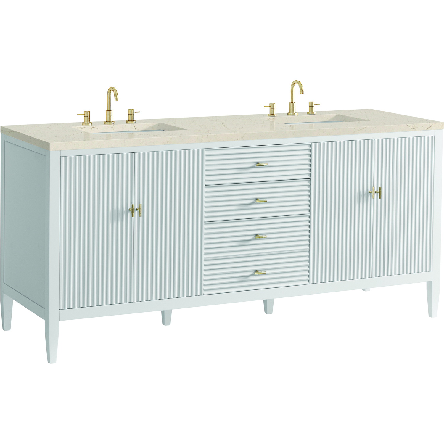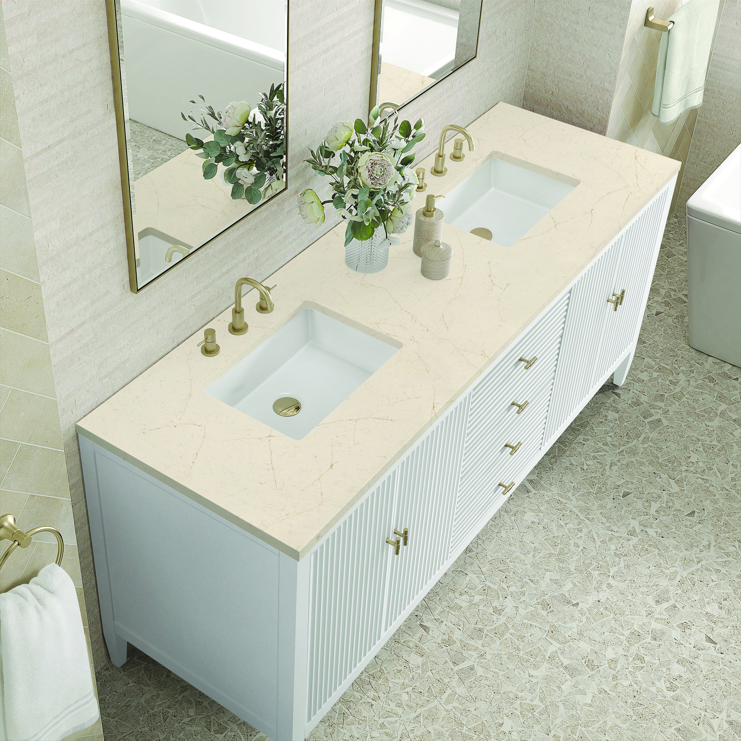 James Martin Myrrin 72 inch Double Vanity, Bright White w/ 3 CM Eternal Marfil Quartz Top, 840108974397, 485-V72-BW-3EMR