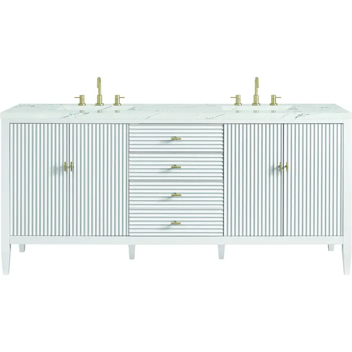 James Martin Myrrin 72 inch Double Vanity, Bright White w/ 3 CM Ethereal Noctis Quartz Top, 840108974380, 485-V72-BW-3ENC