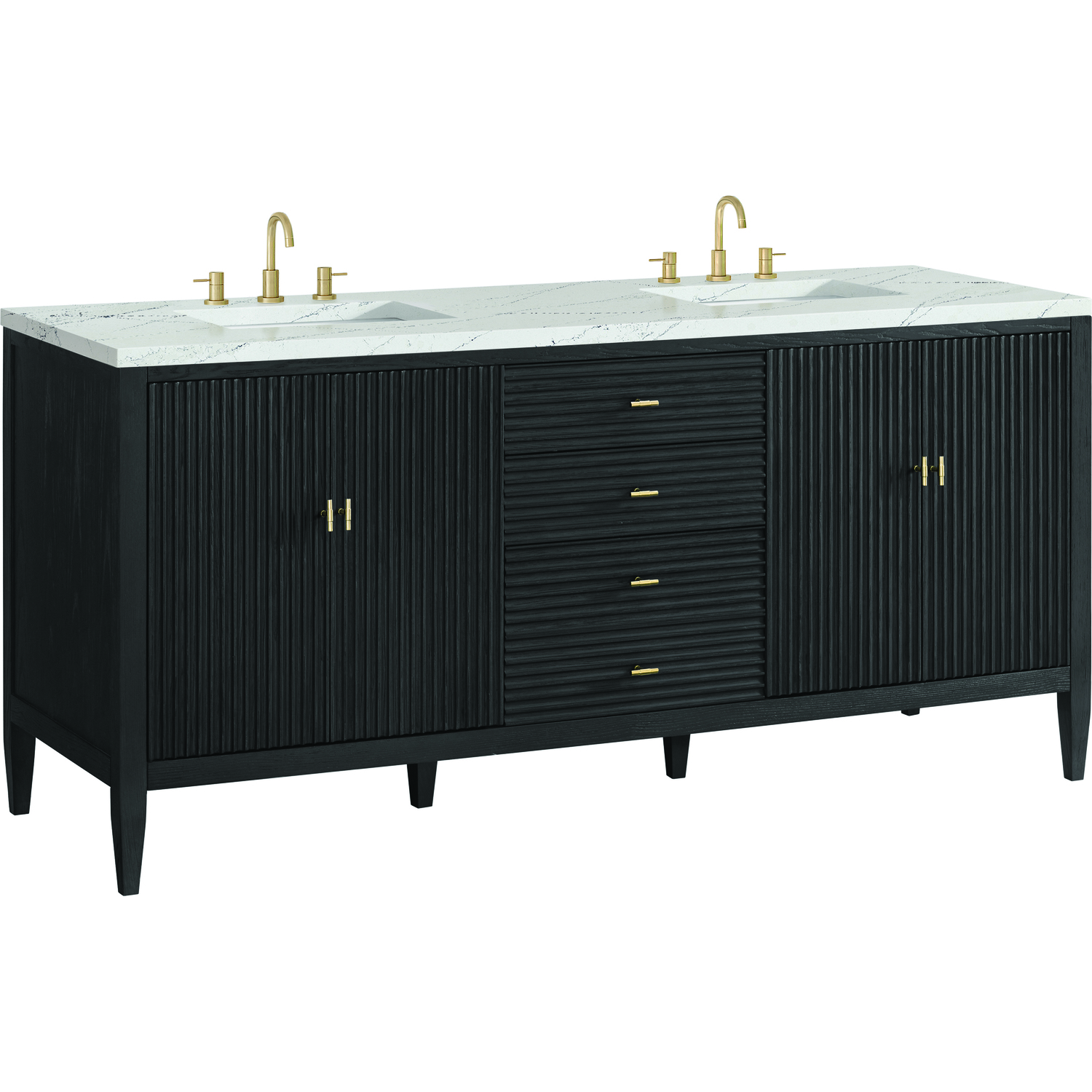 James Martin Myrrin 72 inch Double Vanity, Carbon Oak w/ 3 CM Ethereal Noctis Quartz Top, 840108974502, 485-V72-CBO-3ENC