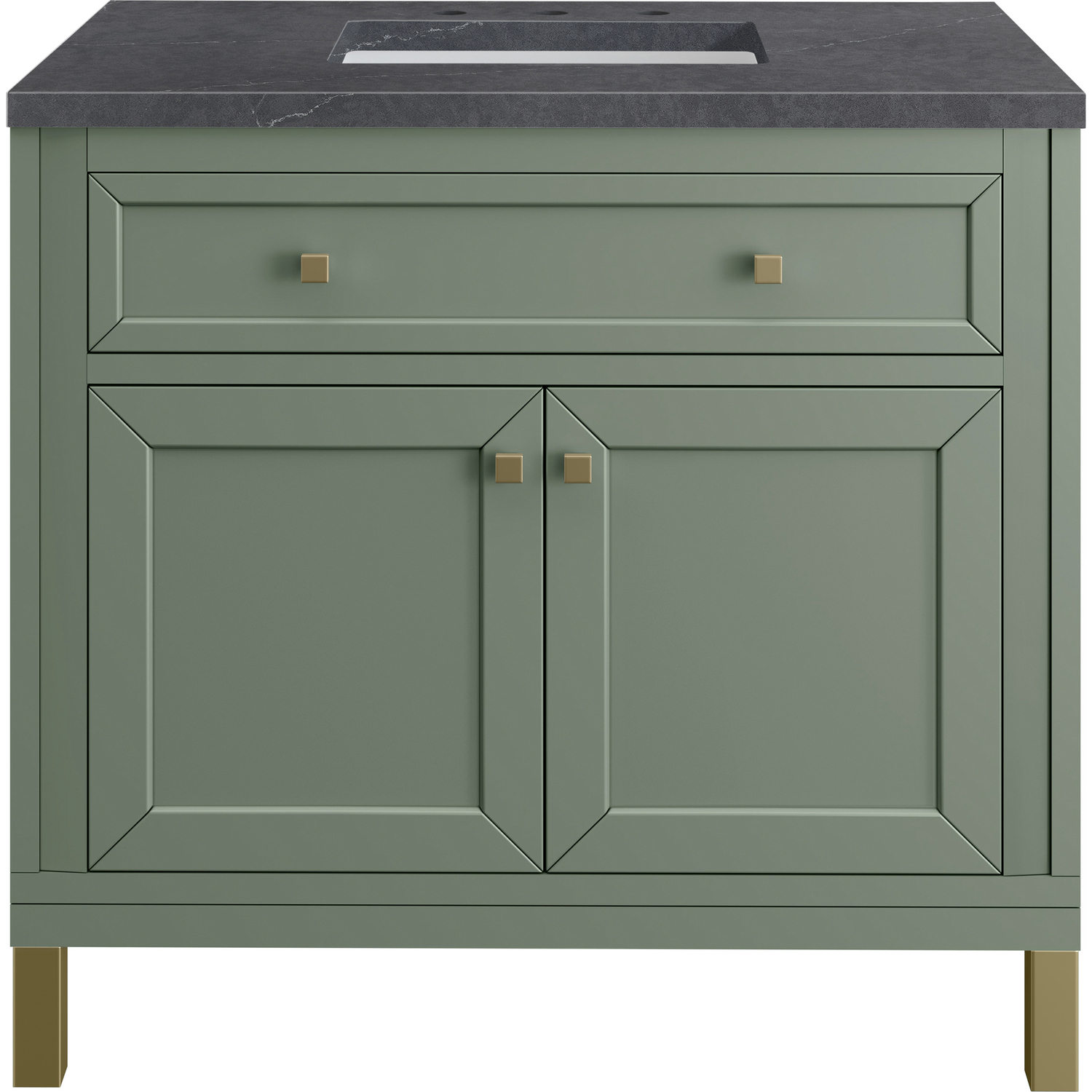James Martin Chicago 36 inch Single Vanity, Smokey Celadon, w/ 3 CM Charcoal Soapstone Silestone® Top, 840467801693, 503-V36-SC-3CSP