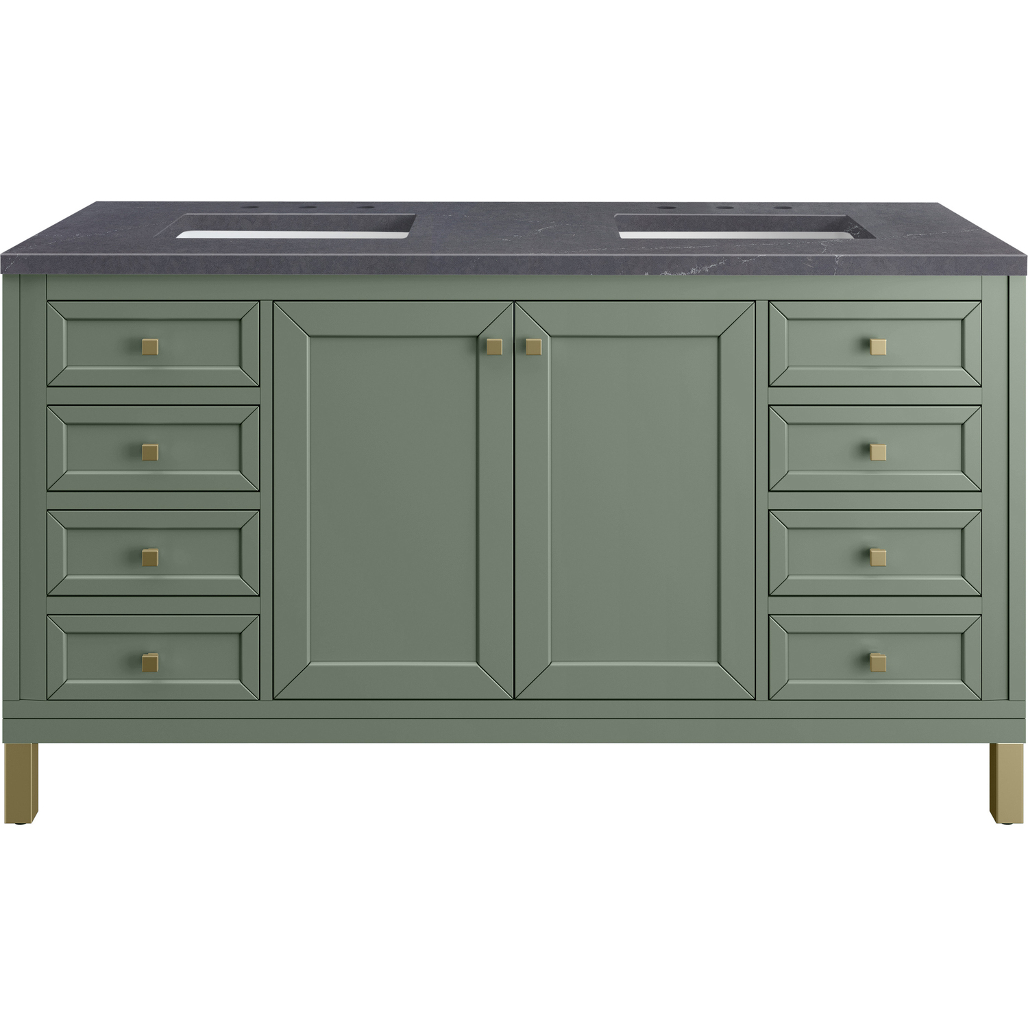 James Martin Chicago 60 inch Double Vanity, Smokey Celadon, w/ 3 CM Charcoal Soapstone Silestone® Top, 840467802218, 503-V60D-SC-3CSP