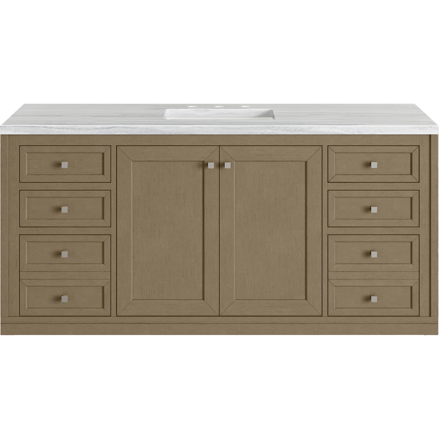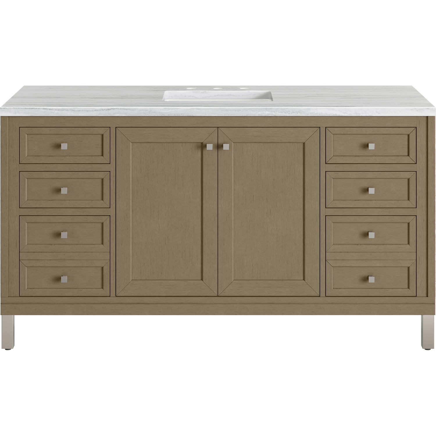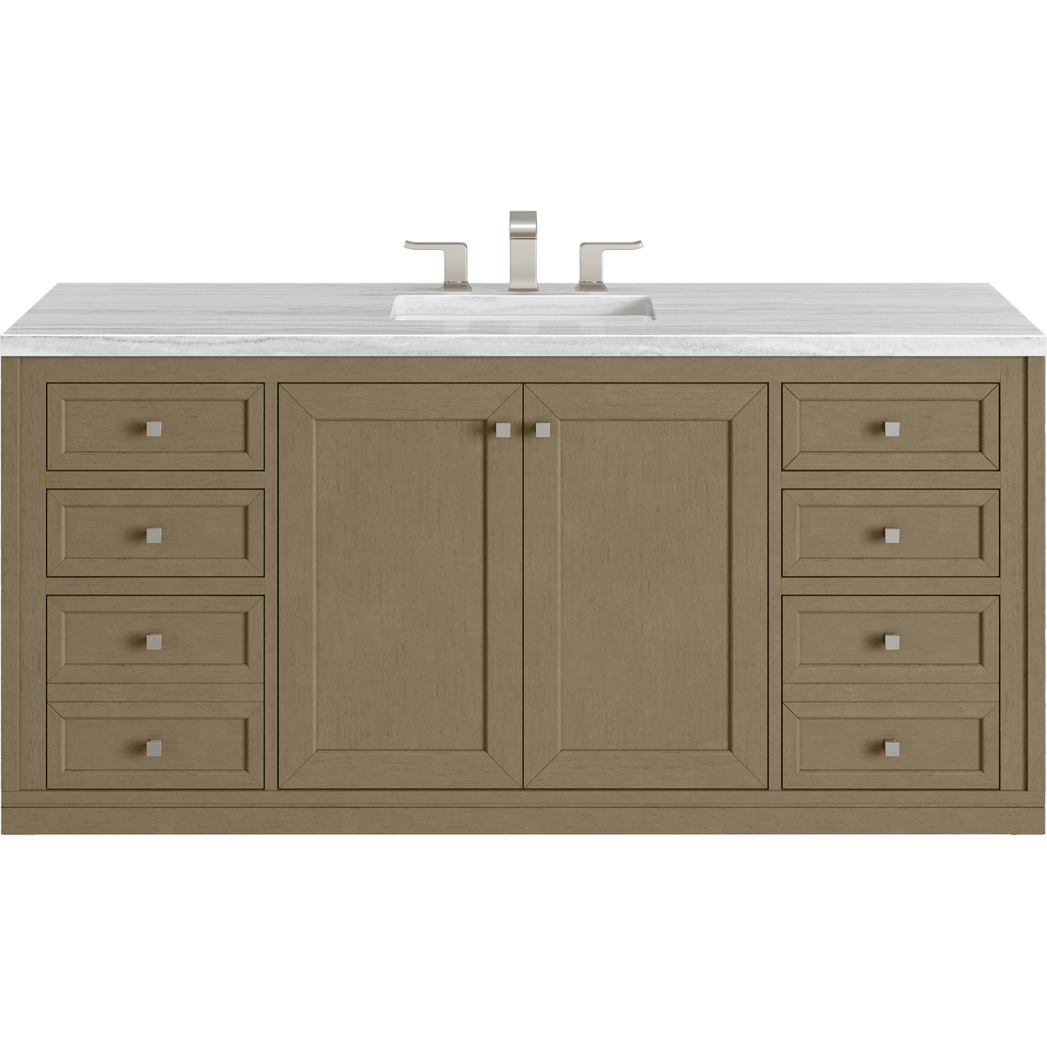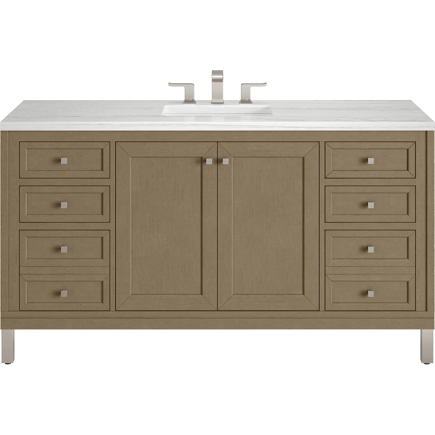 James Martin Chicago 60 inch Single Vanity, Walnut Whisper, w/ 3 CM Arctic Fall Solid Surface Top, 840467802539, 503-V60S-WLW-3AF