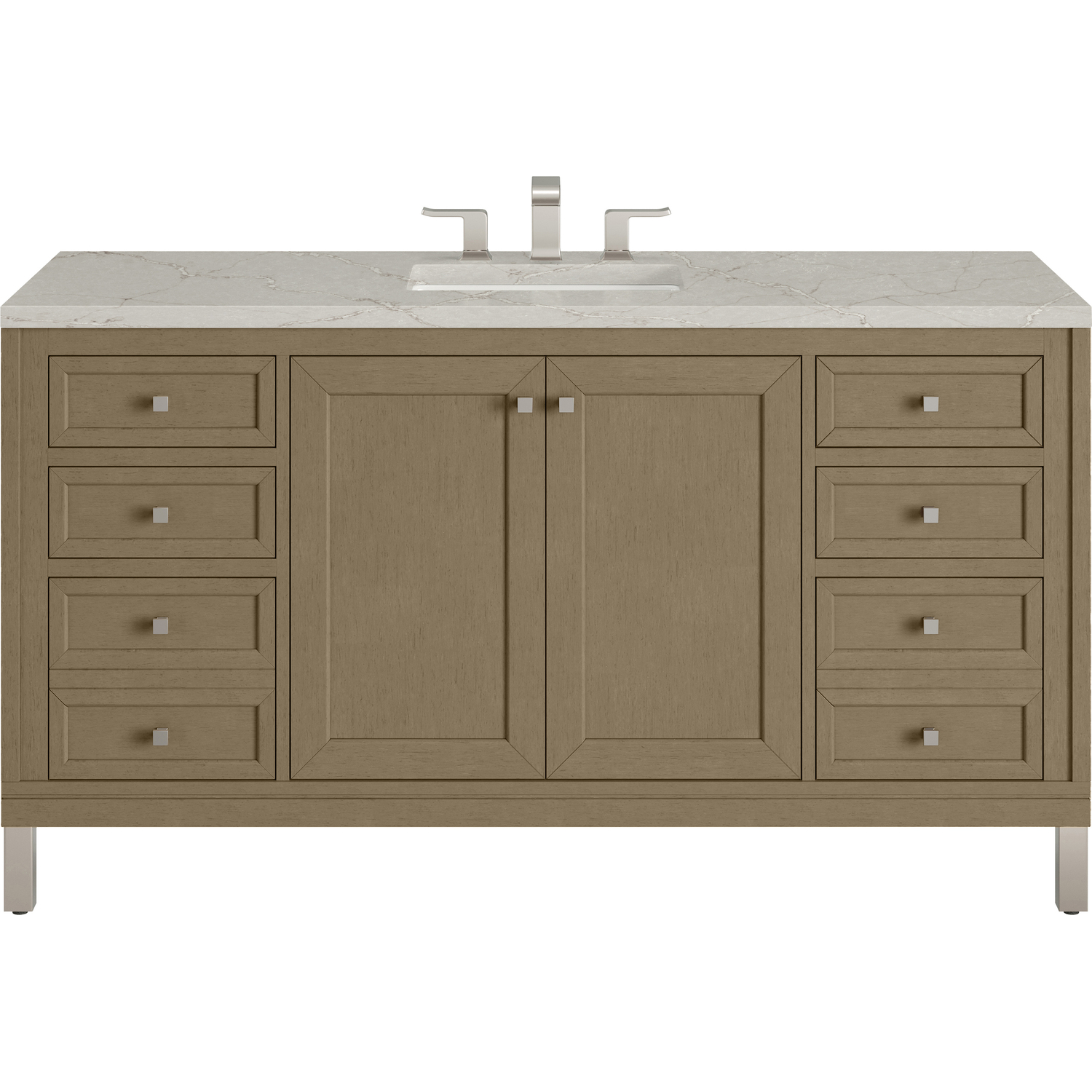 James Martin Chicago 60 inch Single Vanity, Walnut Whisper, w/ 3 CM Victorian Silver Silestone Top w/ FreePower Wireless Charger, 840467807336, 503-V60S-WLW-FVSL