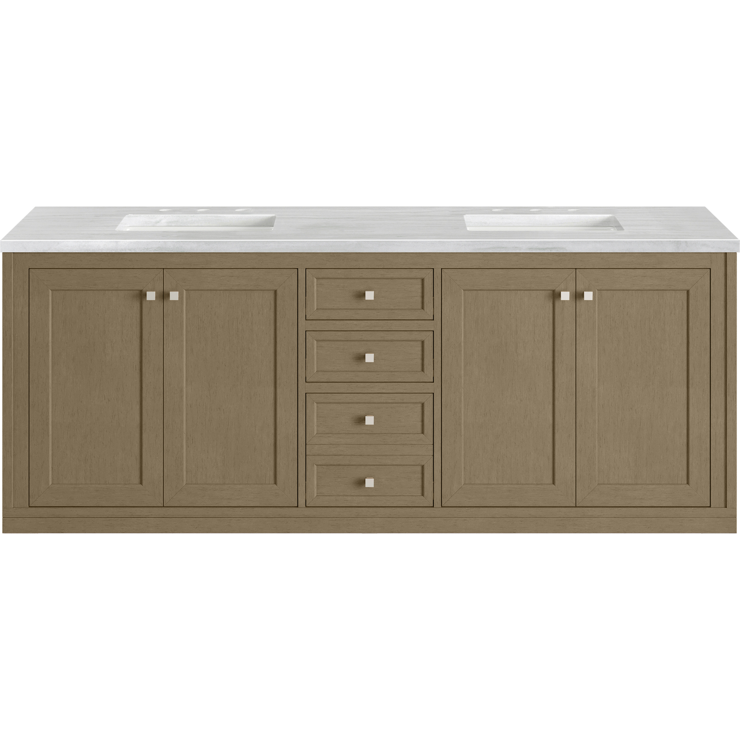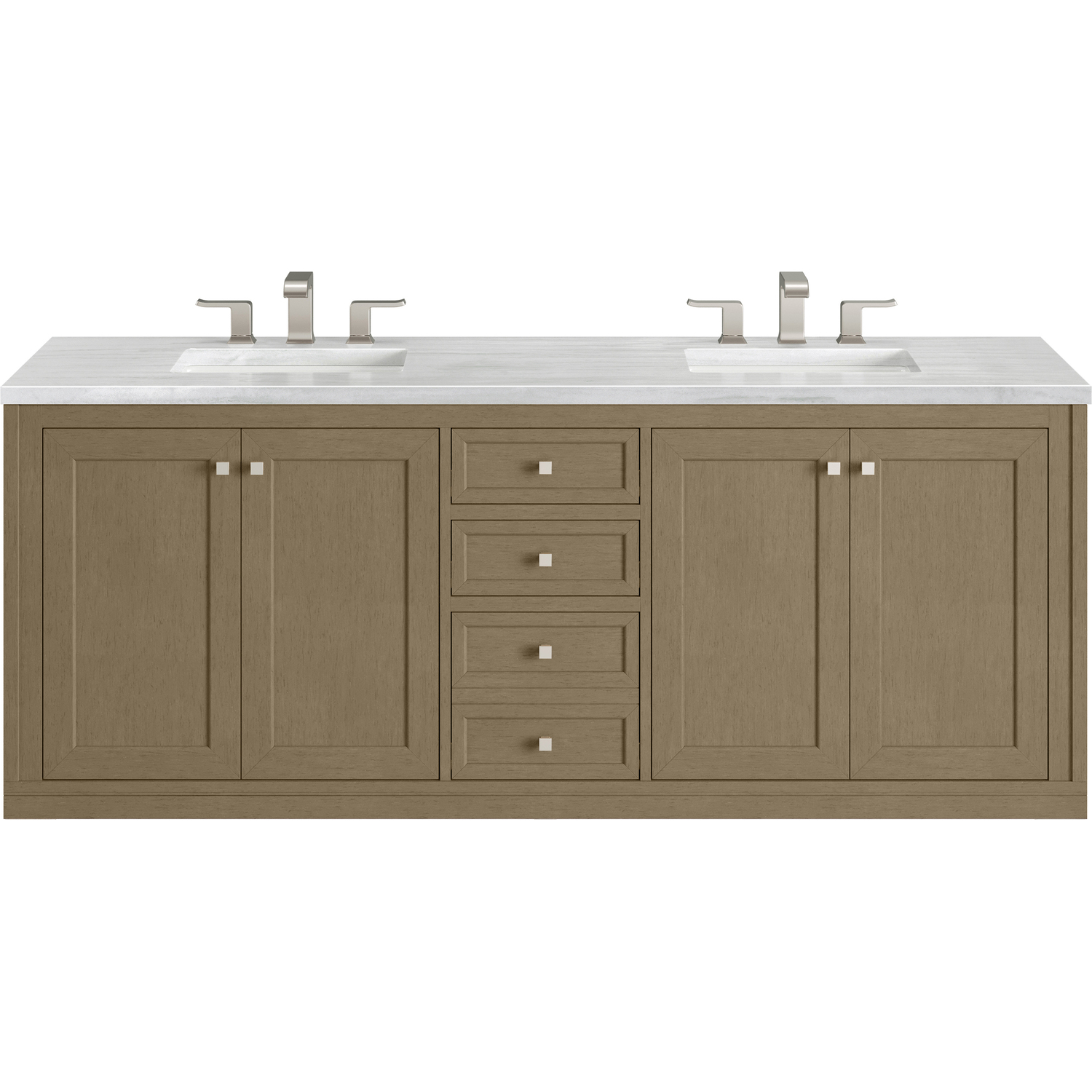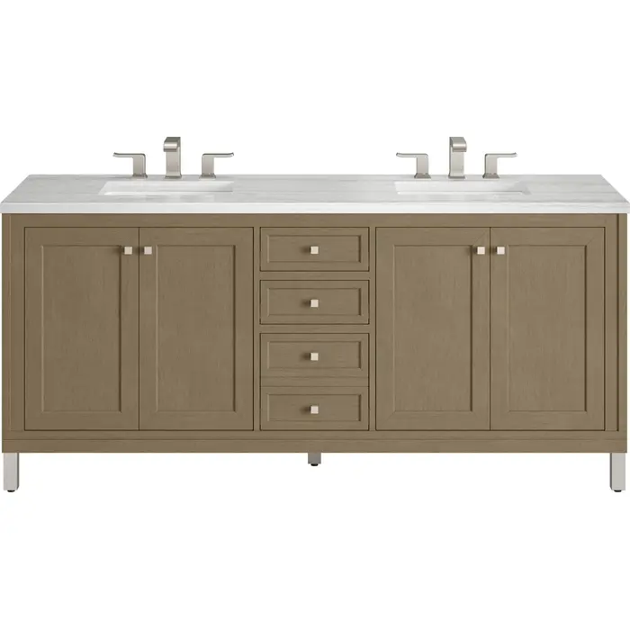 James Martin Chicago 72 inch Double Vanity, Walnut Whisper, w/ 3 CM Arctic Fall Solid Surface Top, 840467802799, 503-V72-WLW-3AF