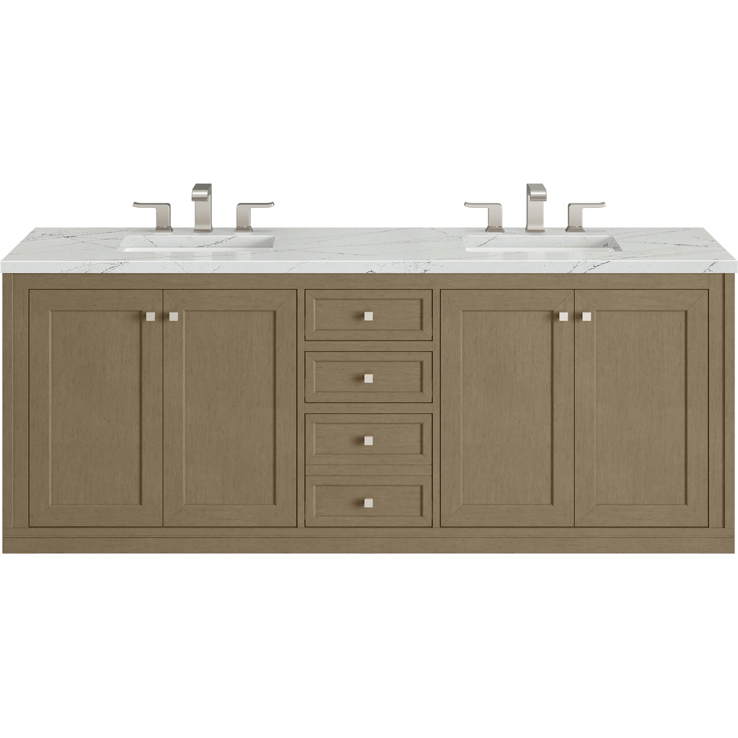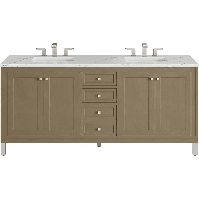 James Martin Chicago 72 inch Double Vanity, Walnut Whisper, w/ 3 CM Ethereal Noctis Silestone® Top, 840467802836, 503-V72-WLW-3ENC
