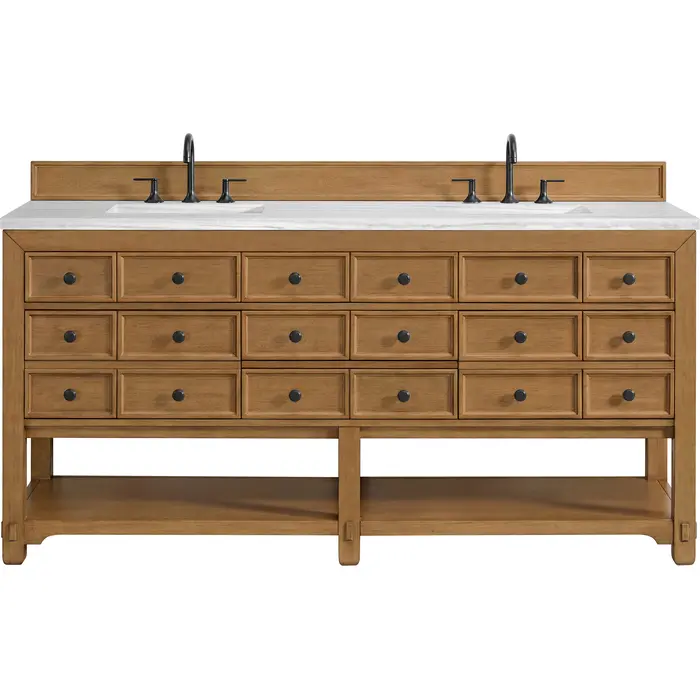 James Martin Malibu 72 inch Double Vanity, Amber Birch w/ 3 CM Arctic Fall Top, 840108992353, 505-V72-AMB-3AF