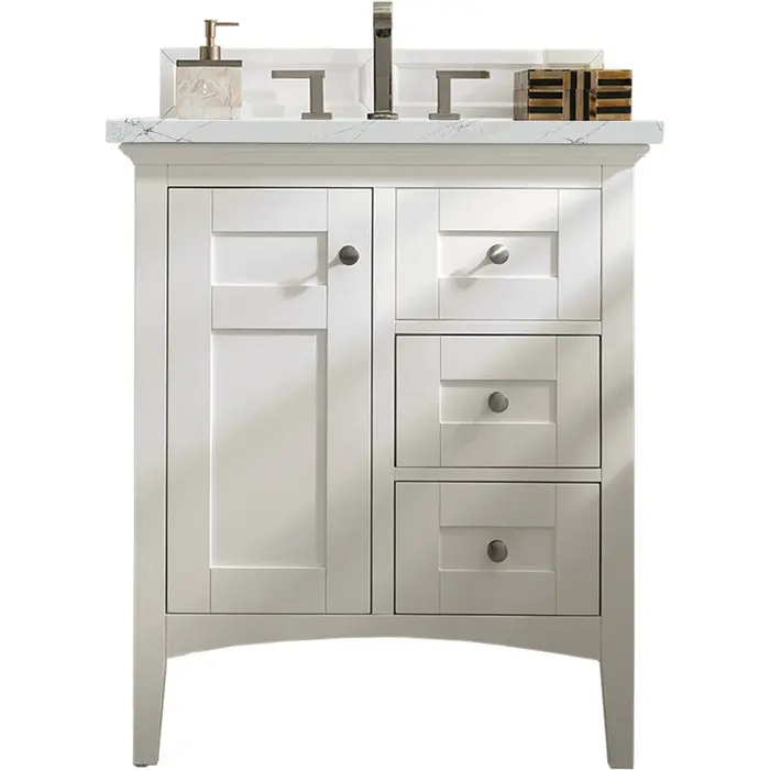 James Martin Palisades 30 inch Single Bathroom Vanity, Bright White w/ 3 CM Ethereal Noctis Quartz Top 527-V30-BW-3ENC