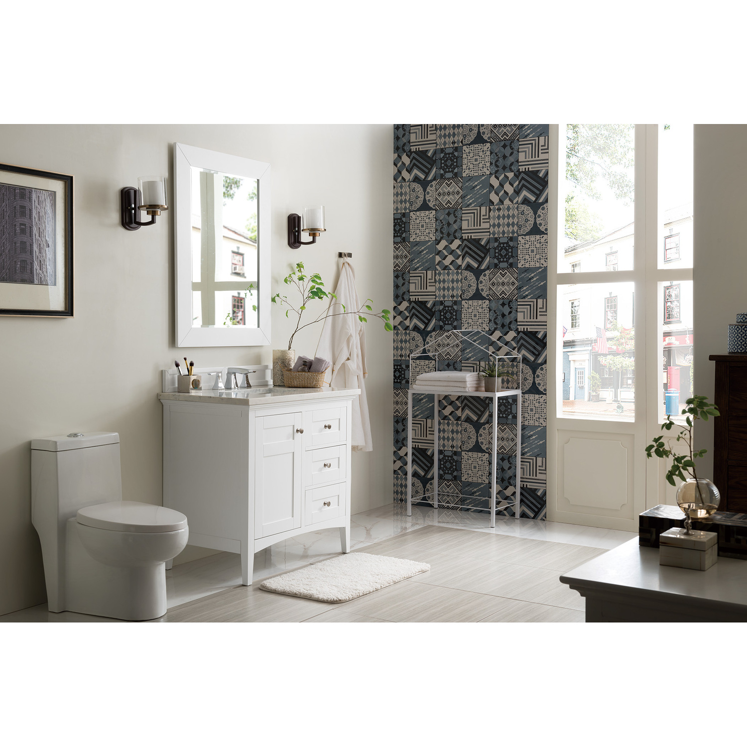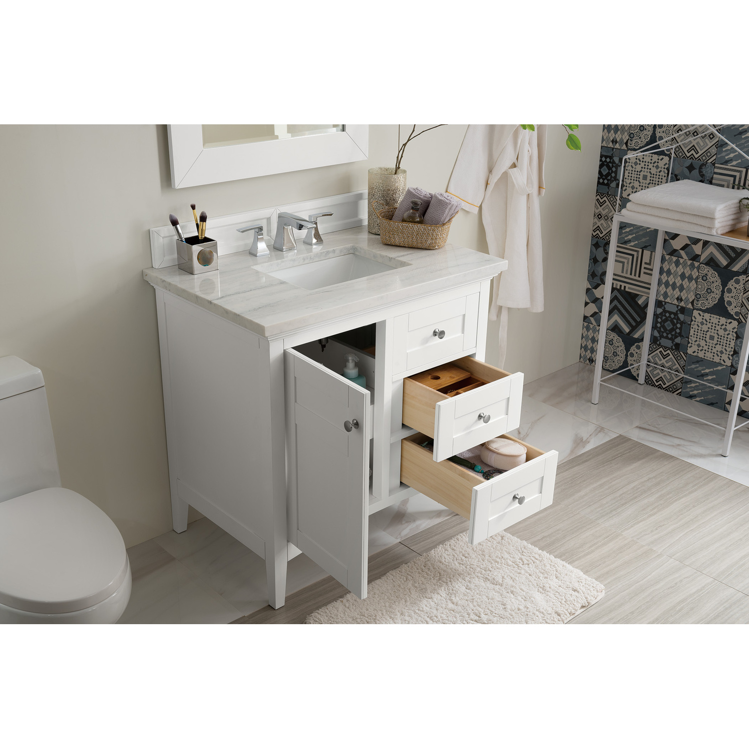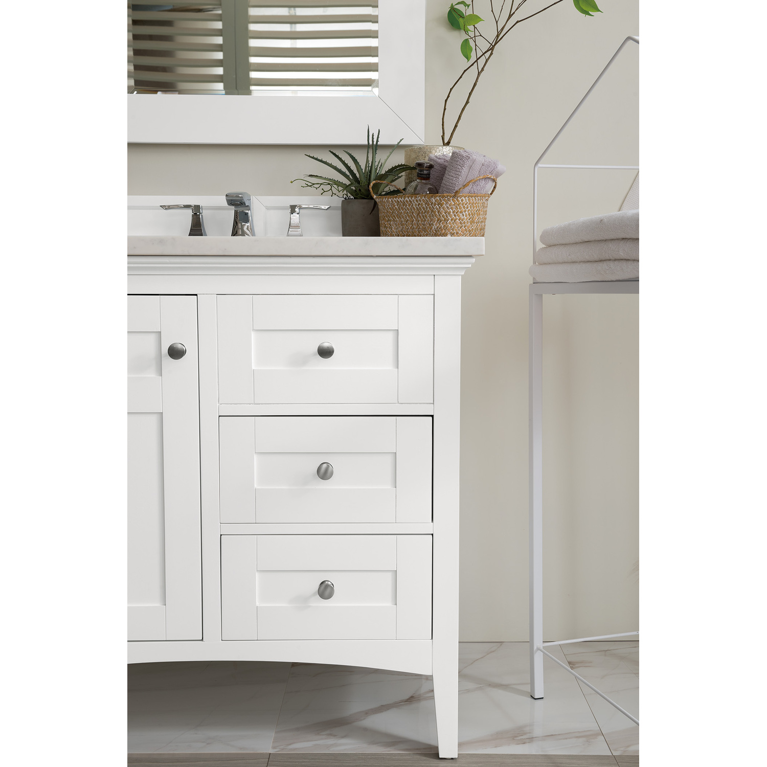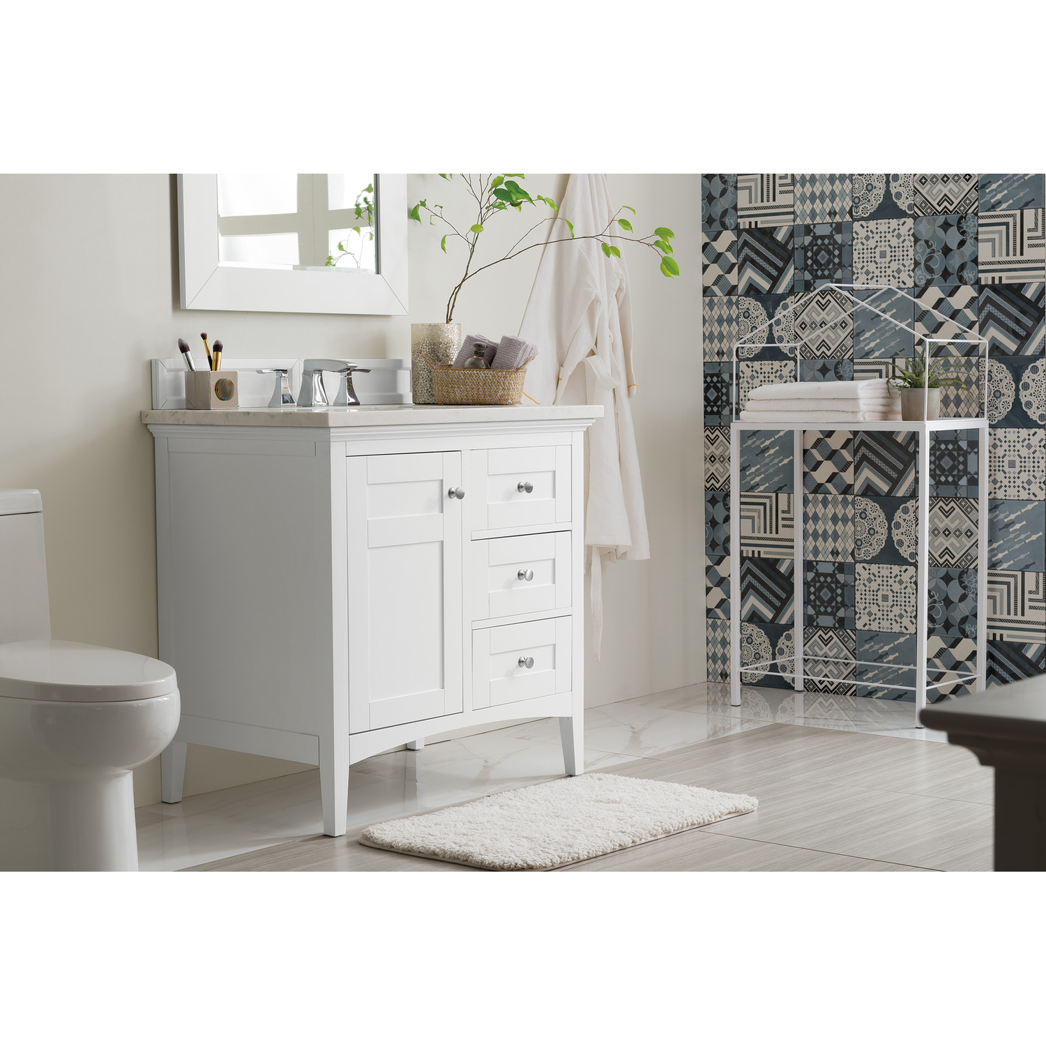 James Martin Palisades 36 inch Single Bathroom Vanity, Bright White w/ 3 CM Arctic Fall Solid Surface Top 527-V36-BW-3AF