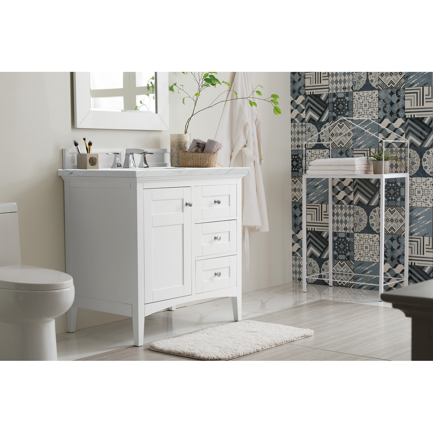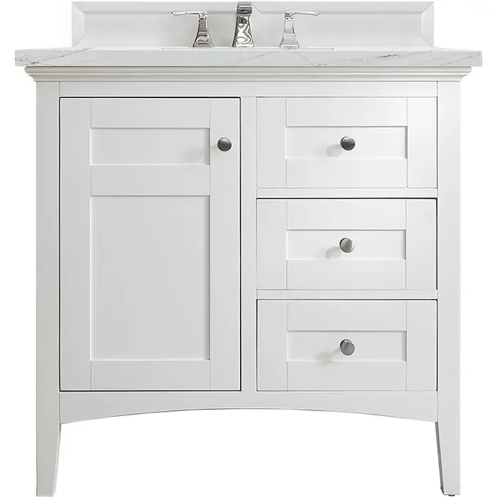 James Martin Palisades 36 inch Single Bathroom Vanity, Bright White w/ 3 CM Ethereal Noctis Quartz Top 527-V36-BW-3ENC