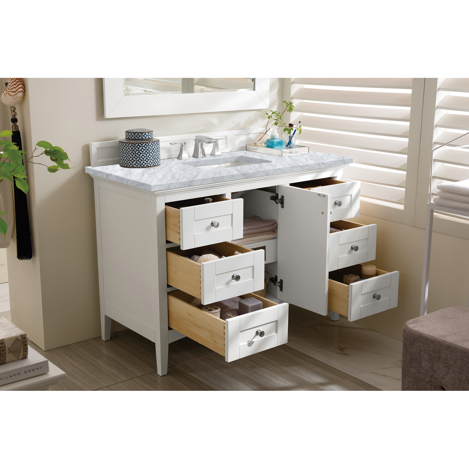 James Martin Palisades 48 inch Single Bathroom Vanity, Bright White w/ 3 CM Carrara Marble Top 527-V48-BW-3CAR