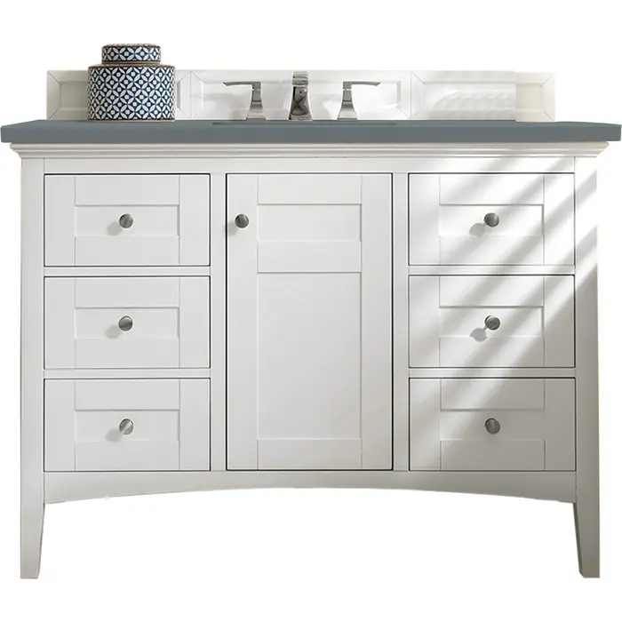 James Martin Palisades 48 inch Single Bathroom Vanity, Bright White w/ 3 CM Cala Blue Quartz Top 527-V48-BW-3CBL