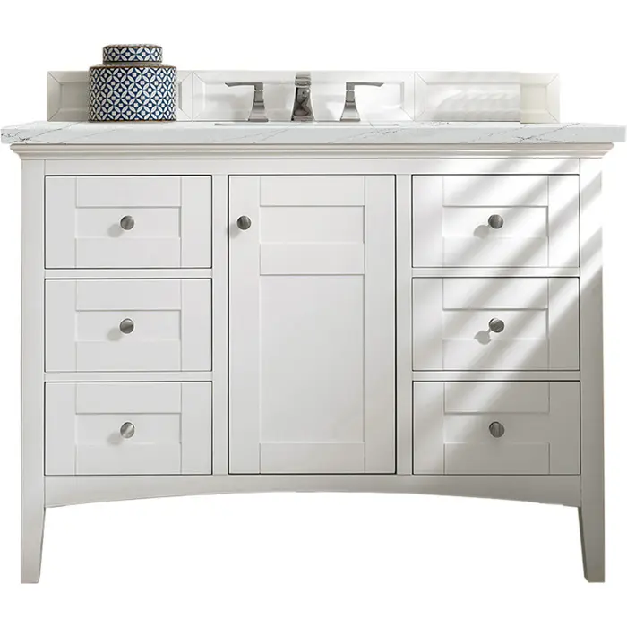 James Martin Palisades 48 inch Single Bathroom Vanity, Bright White w/ 3 CM Ethereal Noctis Quartz Top 527-V48-BW-3ENC