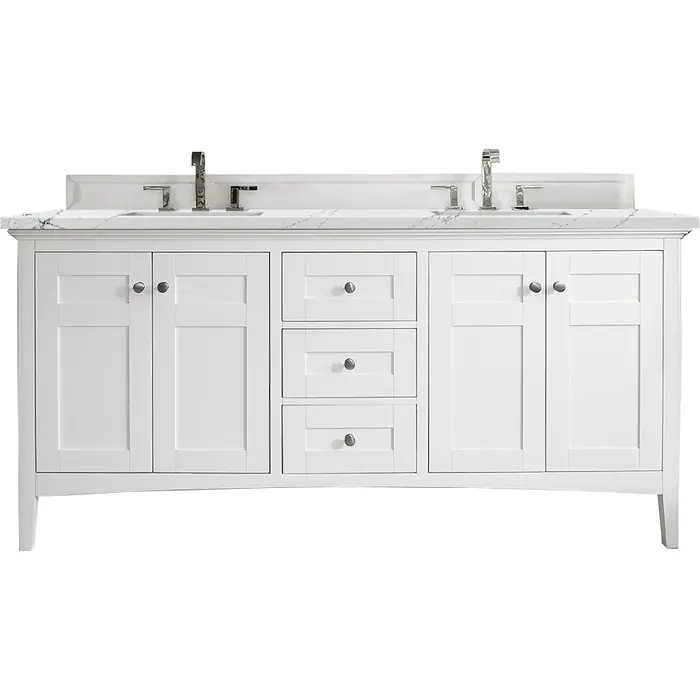 James Martin Palisades 72 inch Double Bathroom Vanity, Bright White w/ 3 CM Ethereal Noctis Quartz Top 527-V72-BW-3ENC