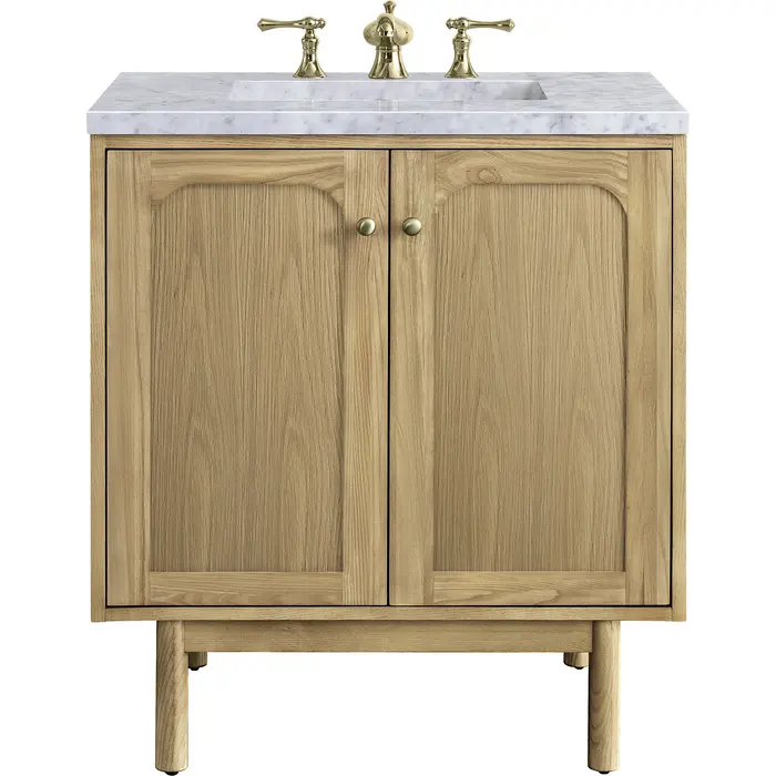 James Martin Laurent 30 inch Single Bathroom Vanity, Light Natural Oak w/ 3 CM Carrara Marble Top 545-V30-LNO-3CAR