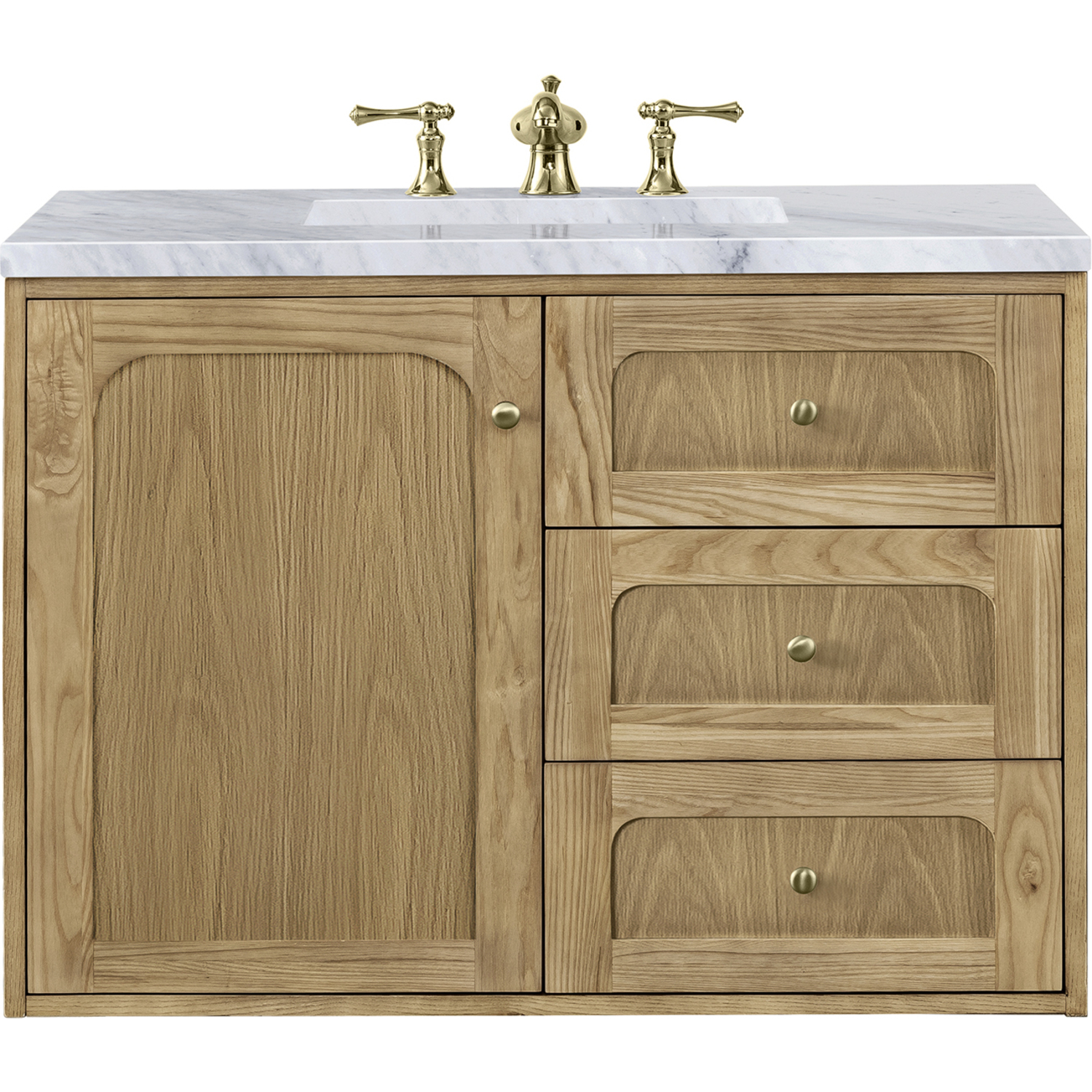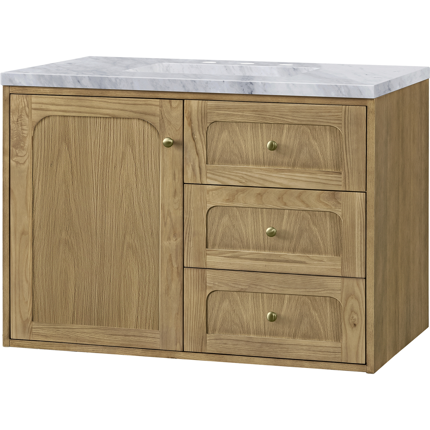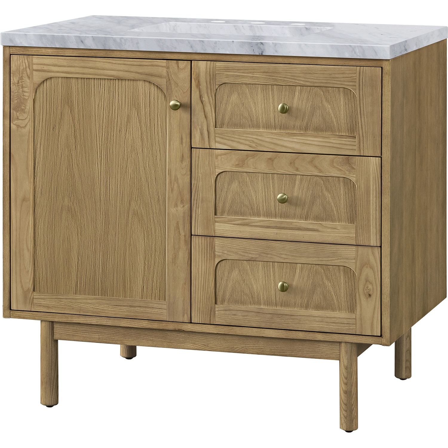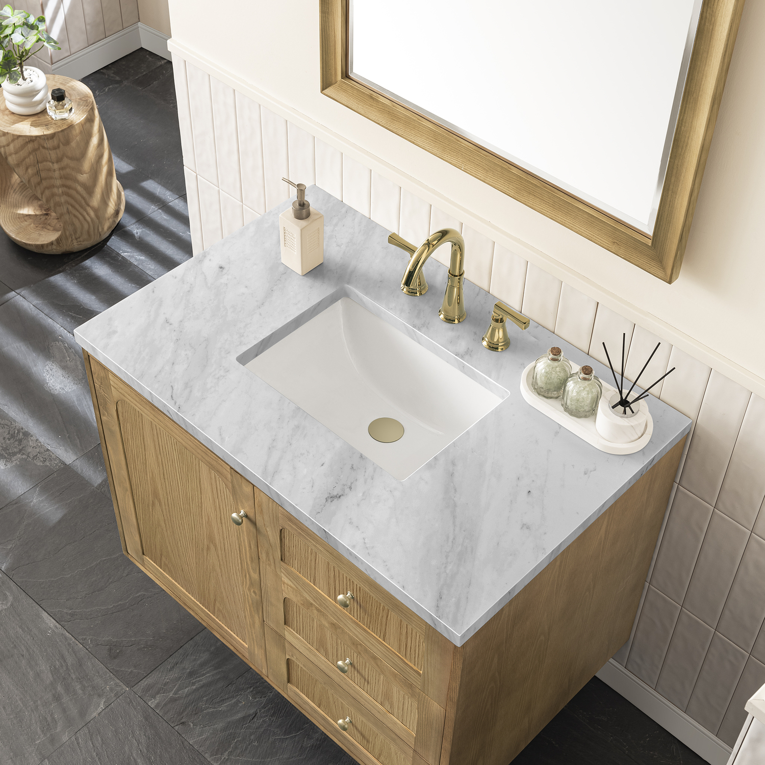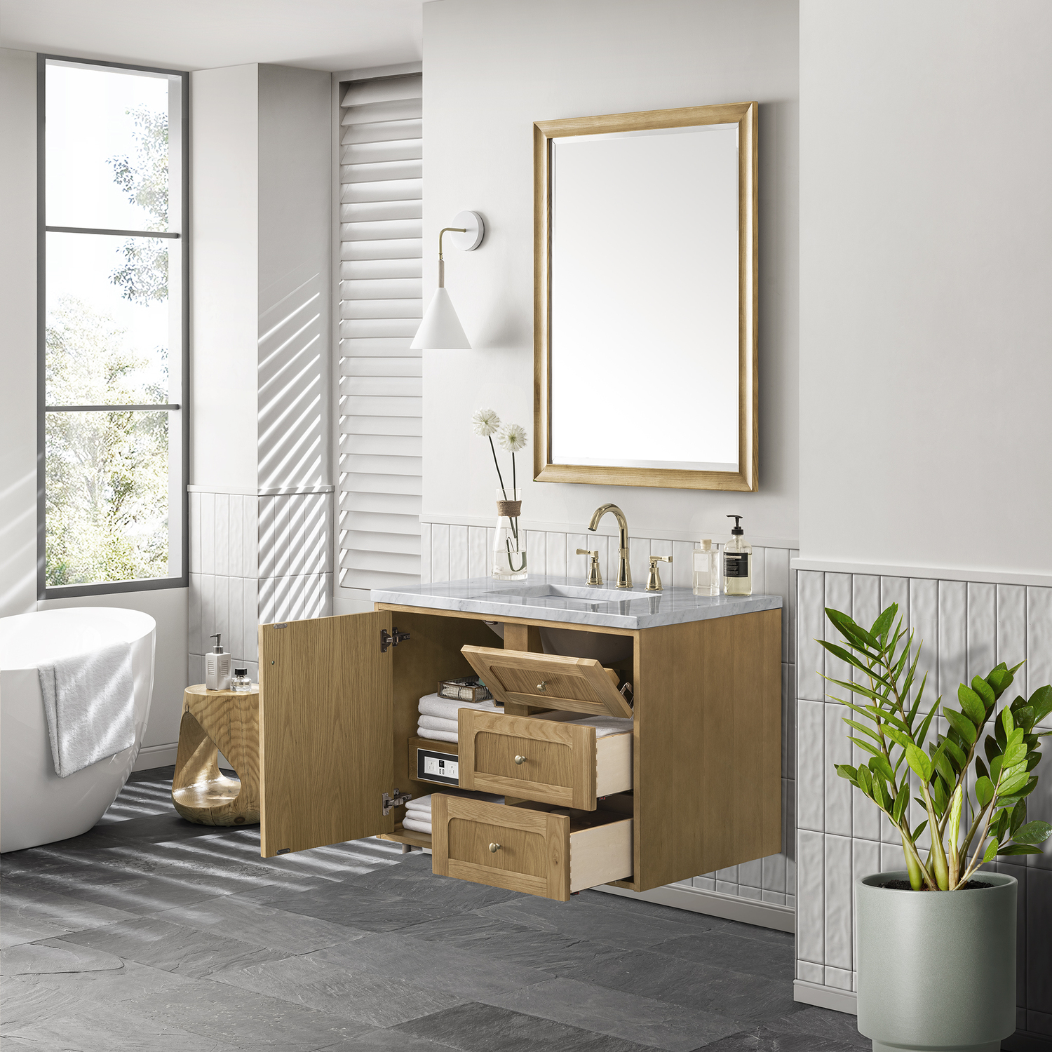 James Martin Laurent 36 inch Single Bathroom Vanity, Light Natural Oak w/ 3 CM Carrara Marble Top 545-V36-LNO-3CAR