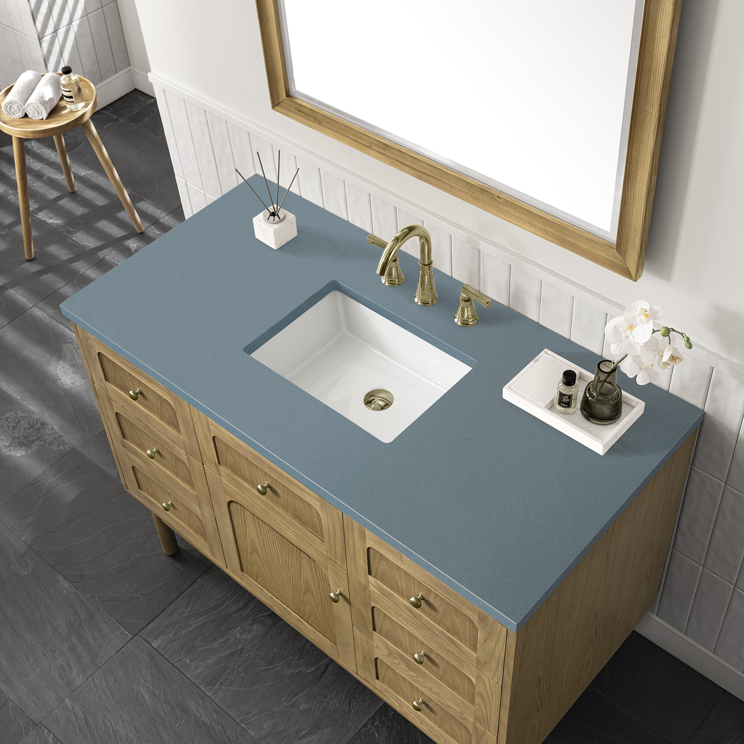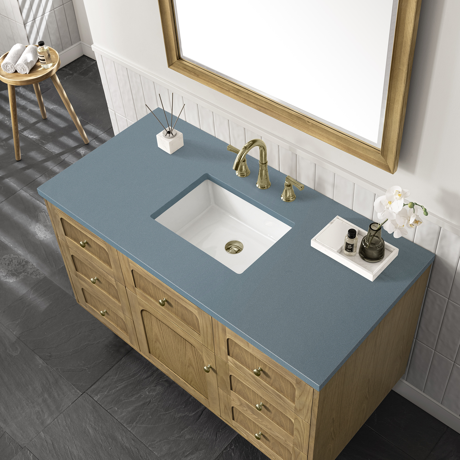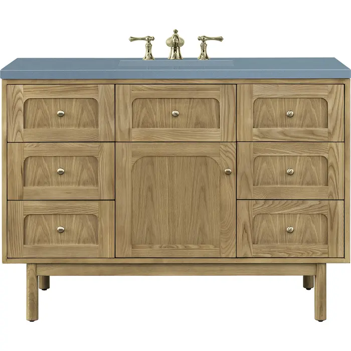 James Martin Laurent 48 inch Single Bathroom Vanity, Light Natural Oak w/ 3 CM Cala Blue Top 545-V48-LNO-3CBL