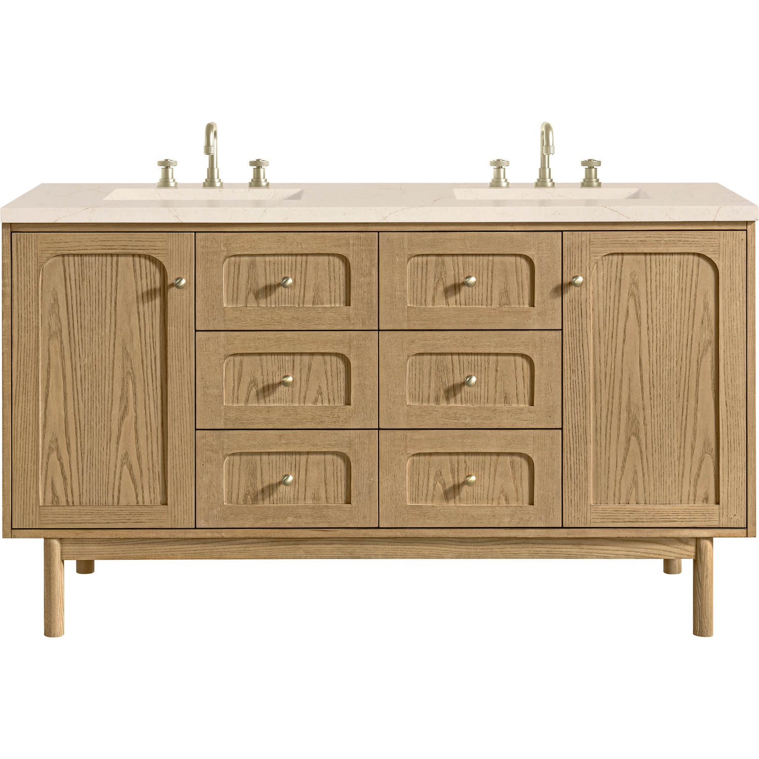 James Martin Laurent 60 inch Double Vanity, Light Natural Oak, w/ 3 CM Eternal Marfil Quartz Top, 840467804779, 545-V60D-LNO-3EMR