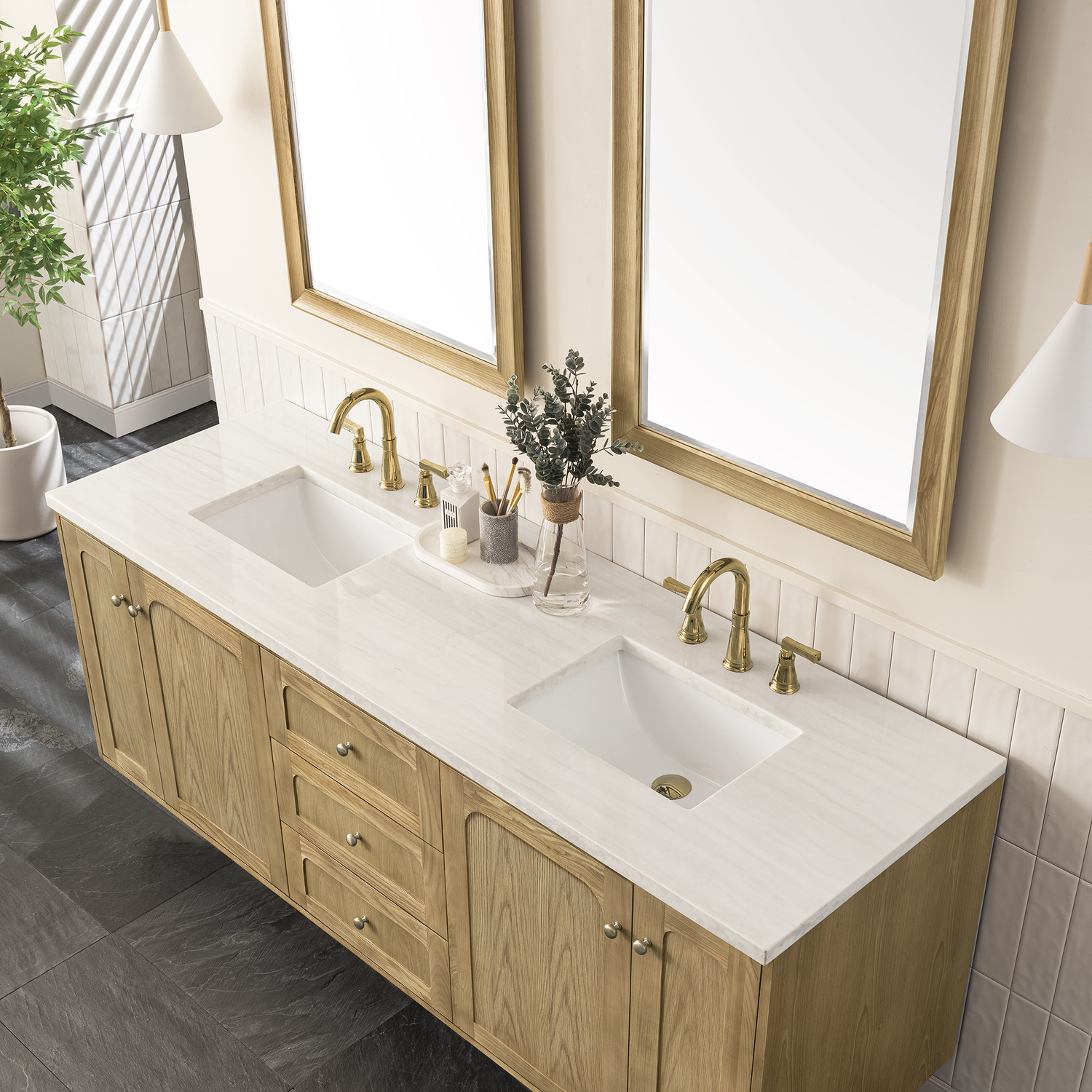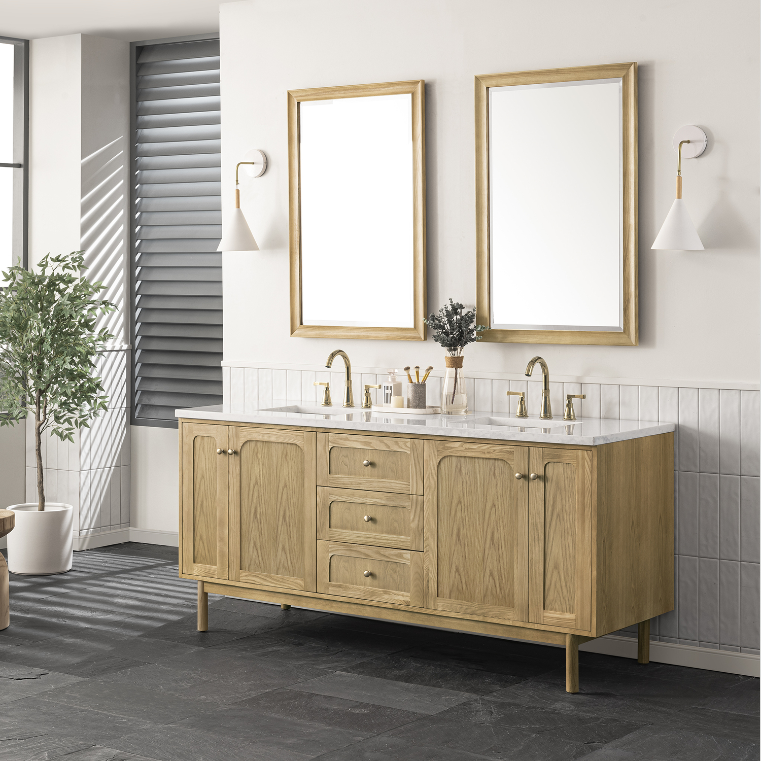 James Martin Laurent 72 inch Double Bathroom Vanity, Light Natural Oak w/ 3 CM Arctic Fall Top 545-V72-LNO-3AF