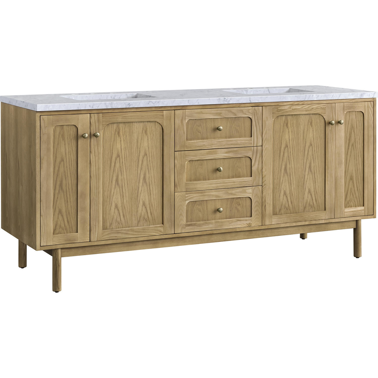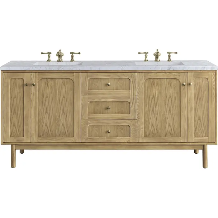 James Martin Laurent 72 inch Double Bathroom Vanity, Light Natural Oak w/ 3 CM Carrara Marble Top 545-V72-LNO-3CAR