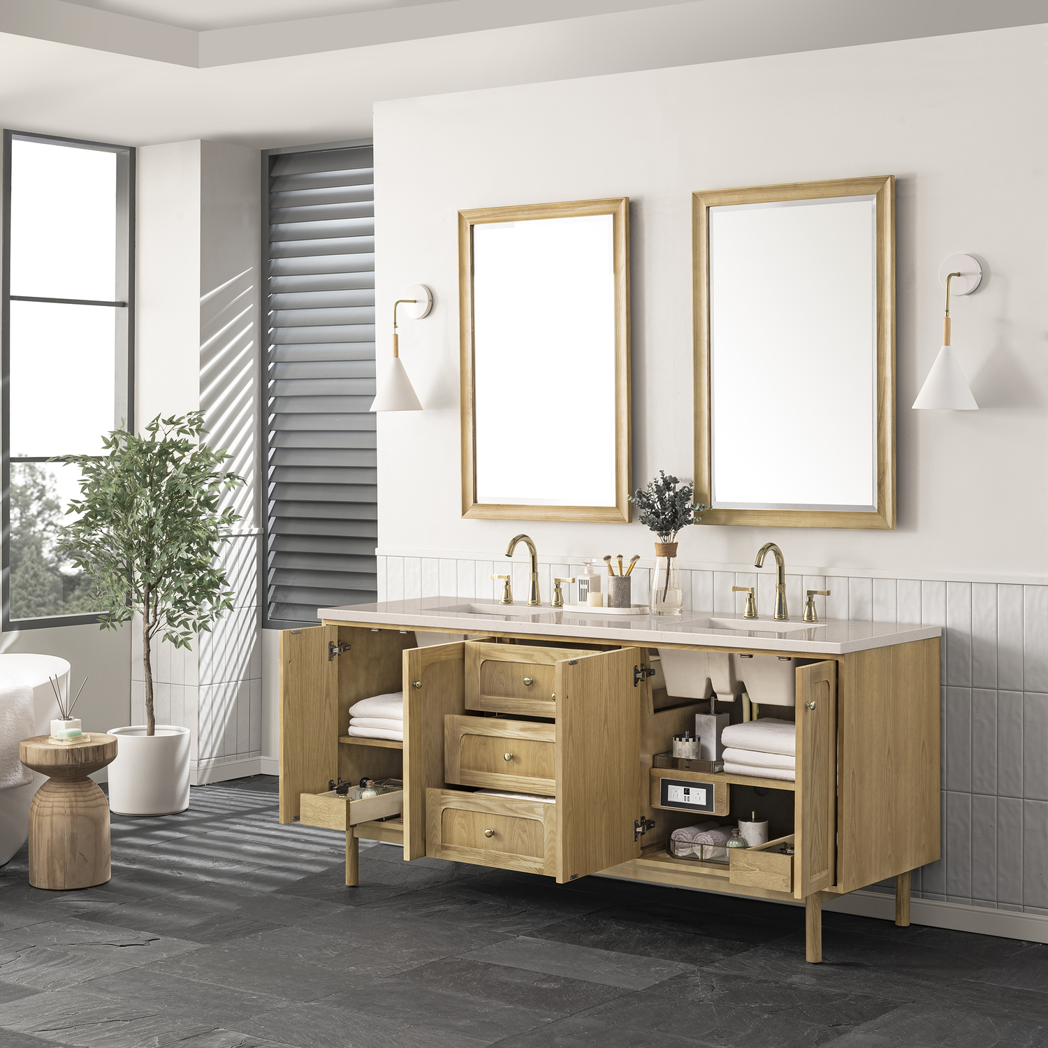 James Martin Laurent 72 inch Double Bathroom Vanity, Light Natural Oak w/ 3 CM Eternal Marfil Top 545-V72-LNO-3EMR