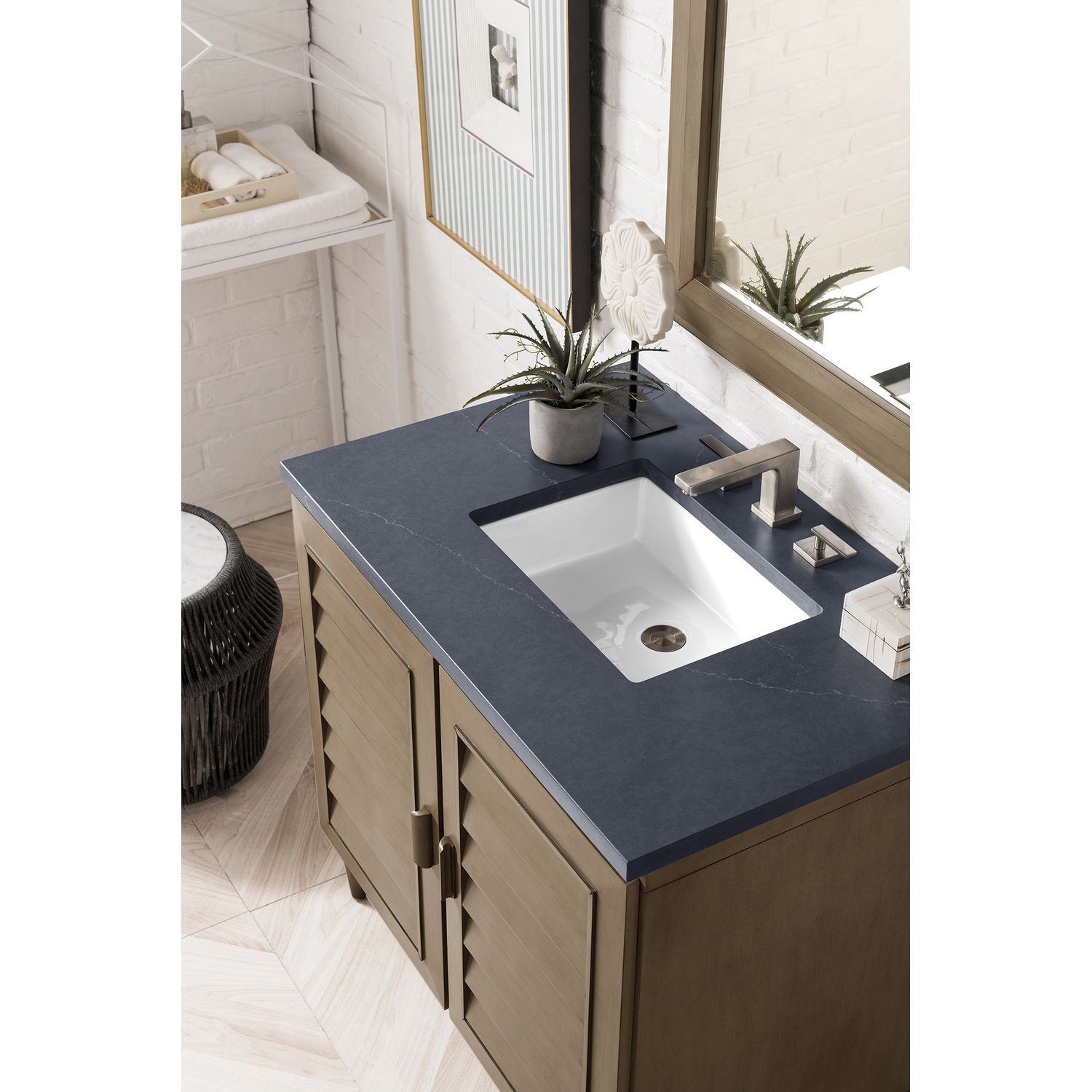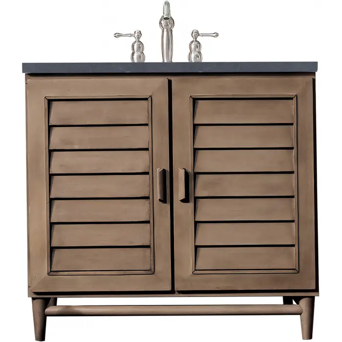 James Martin Portland 36 inch Single Bathroom Vanity Whitewashed Walnut w/ 3 CM Charcoal Soapstone Quartz Top 620-V36-WW-3CSP