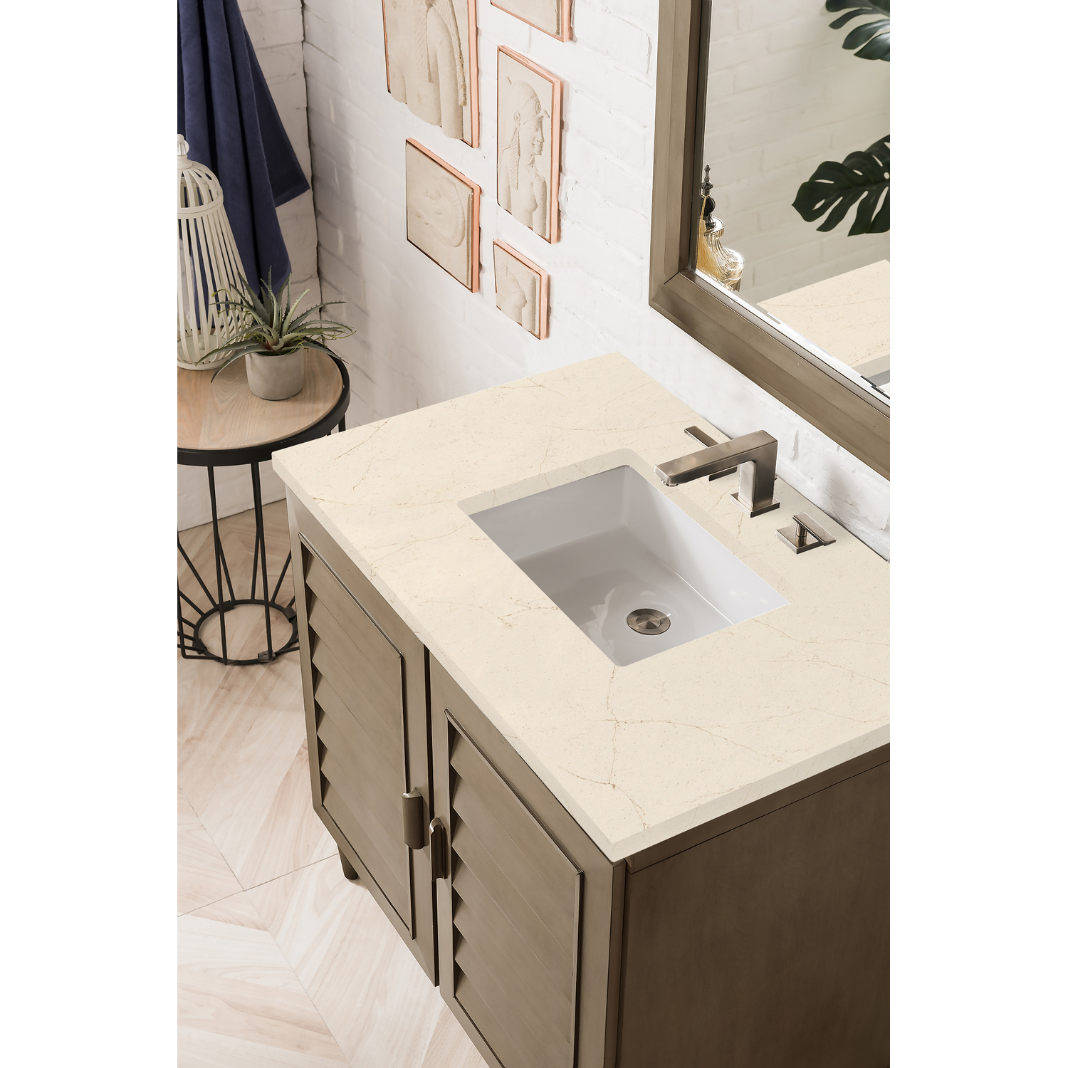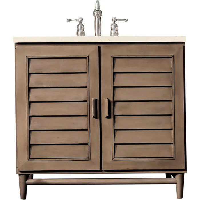 James Martin Portland 36 inch Single Bathroom Vanity Whitewashed Walnut w/ 3 CM Eternal Marfil Quartz Top 620-V36-WW-3EMR