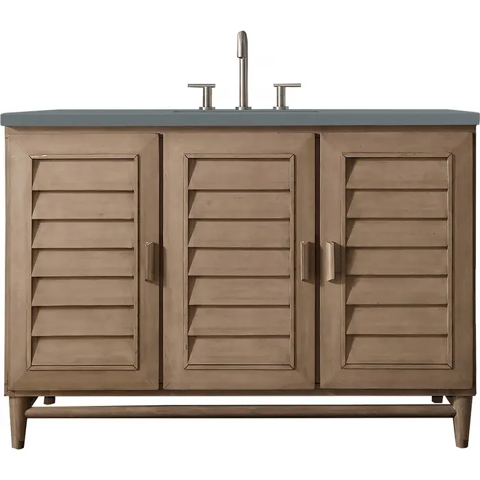 James Martin Portland 48 inch Single Bathroom Vanity Whitewashed Walnut w/ 3 CM Cala Blue Quartz Top 620-V48-WW-3CBL
