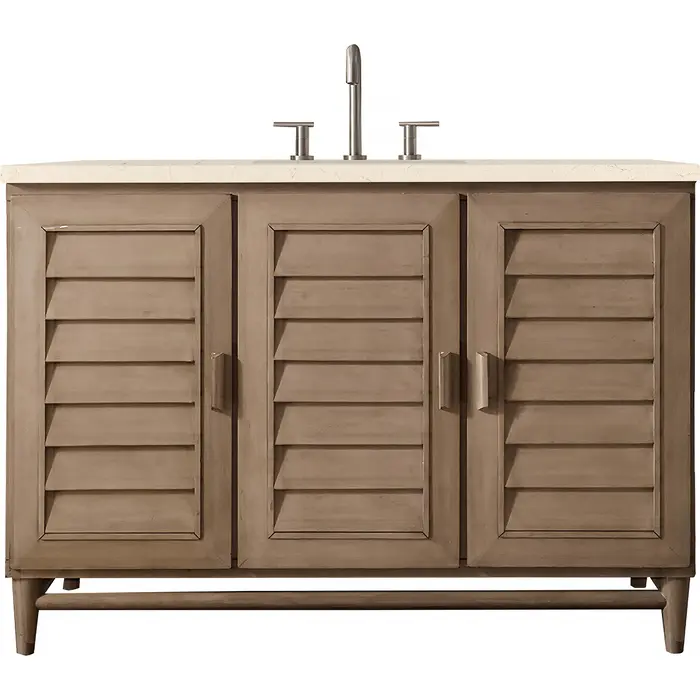 James Martin Portland 48 inch Single Bathroom Vanity Whitewashed Walnut w/ 3 CM Eternal Marfil Quartz Top 620-V48-WW-3EMR