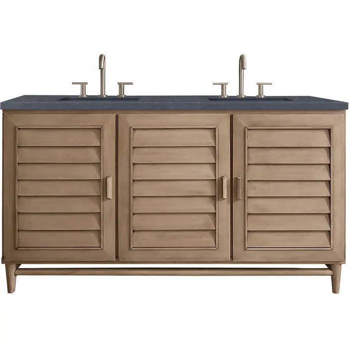 James Martin Portland 60 inch Double Bathroom Vanity Whitewashed Walnut w/ 3 CM Charcoal Soapstone Quartz Top 620-V60D-WW-3CSP
