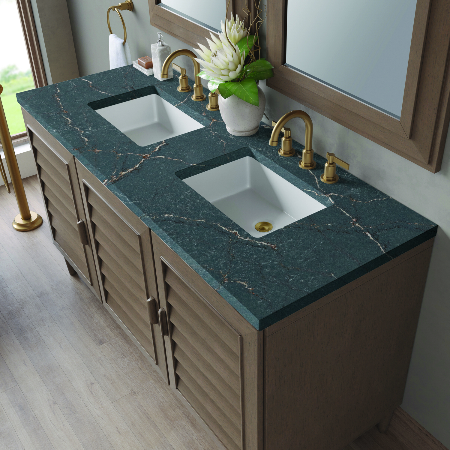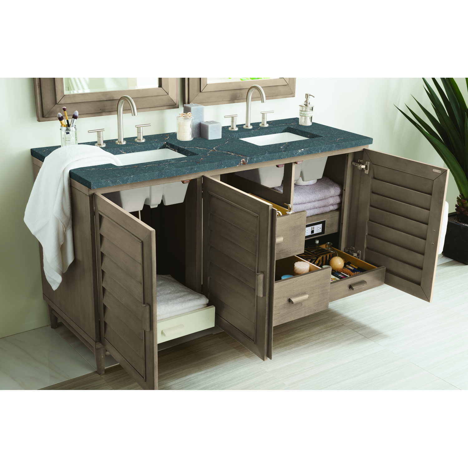 James Martin Portland 60 inch Double Vanity Whitewashed Walnut w/ 3 CM Parisien Bleu Quartz Top, 840108968044, 620-V60D-WW-3PBL