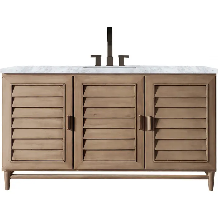 James Martin Portland 60 inch Single Bathroom Vanity Whitewashed Walnut w/ 3 CM Carrara Marble Top 620-V60S-WW-3CAR