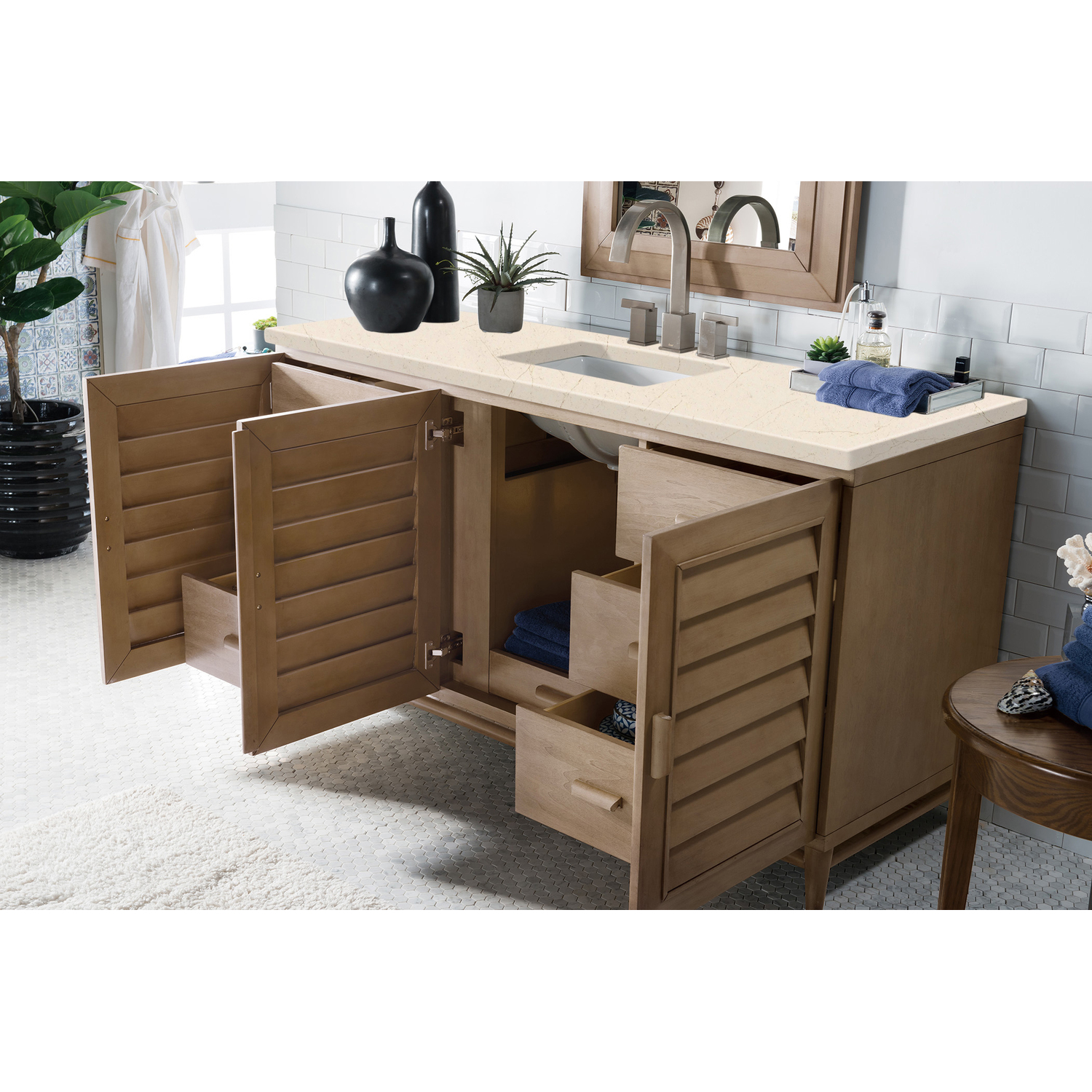 James Martin Portland 60 inch Single Bathroom Vanity Whitewashed Walnut w/ 3 CM Eternal Marfil Quartz Top 620-V60S-WW-3EMR