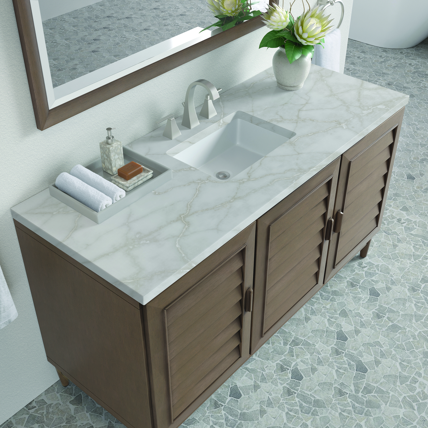 James Martin Portland 60 inch Single Vanity Whitewashed Walnut w/ 3 CM Victorian Silver Quartz Top, 840108966347, 620-V60S-WW-3VSL