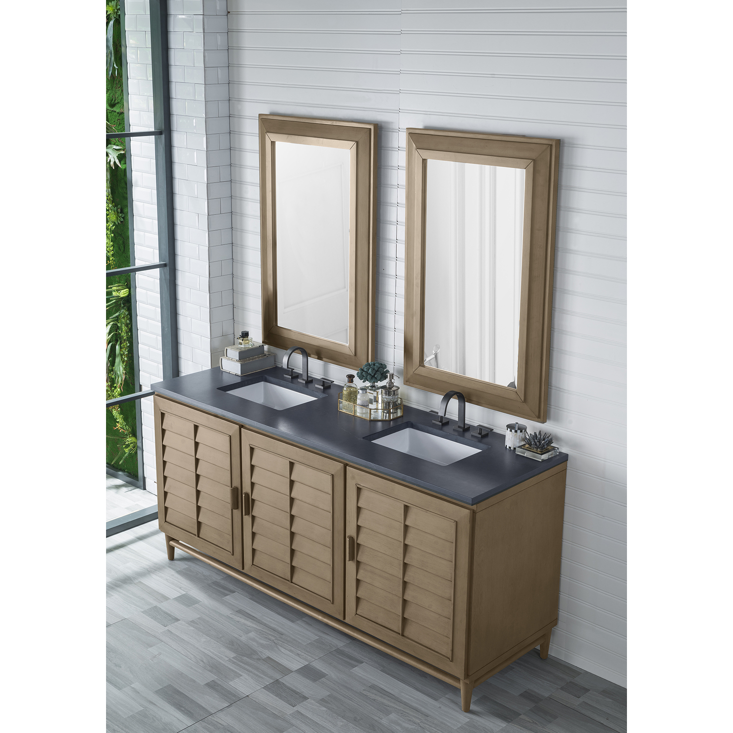 James Martin Portland 72 inch Double Bathroom Vanity Whitewashed Walnut w/ 3 CM Charcoal Soapstone Quartz Top 620-V72-WW-3CSP