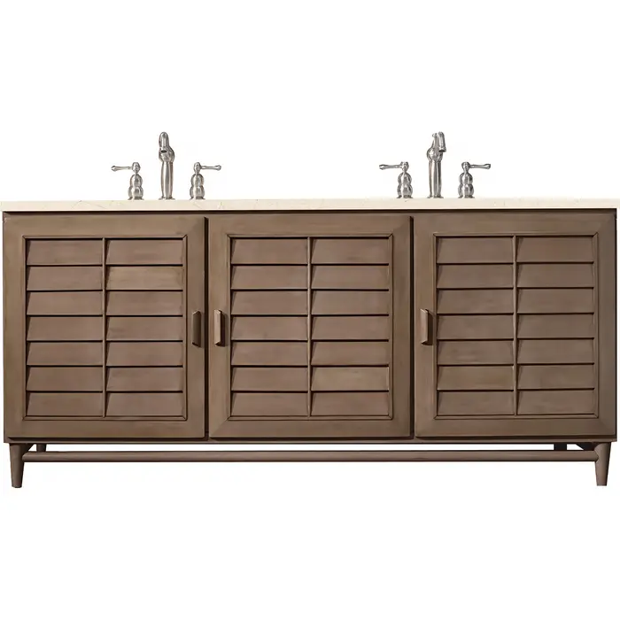 James Martin Portland 72 inch Double Bathroom Vanity Whitewashed Walnut w/ 3 CM Eternal Marfil Quartz Top 620-V72-WW-3EMR