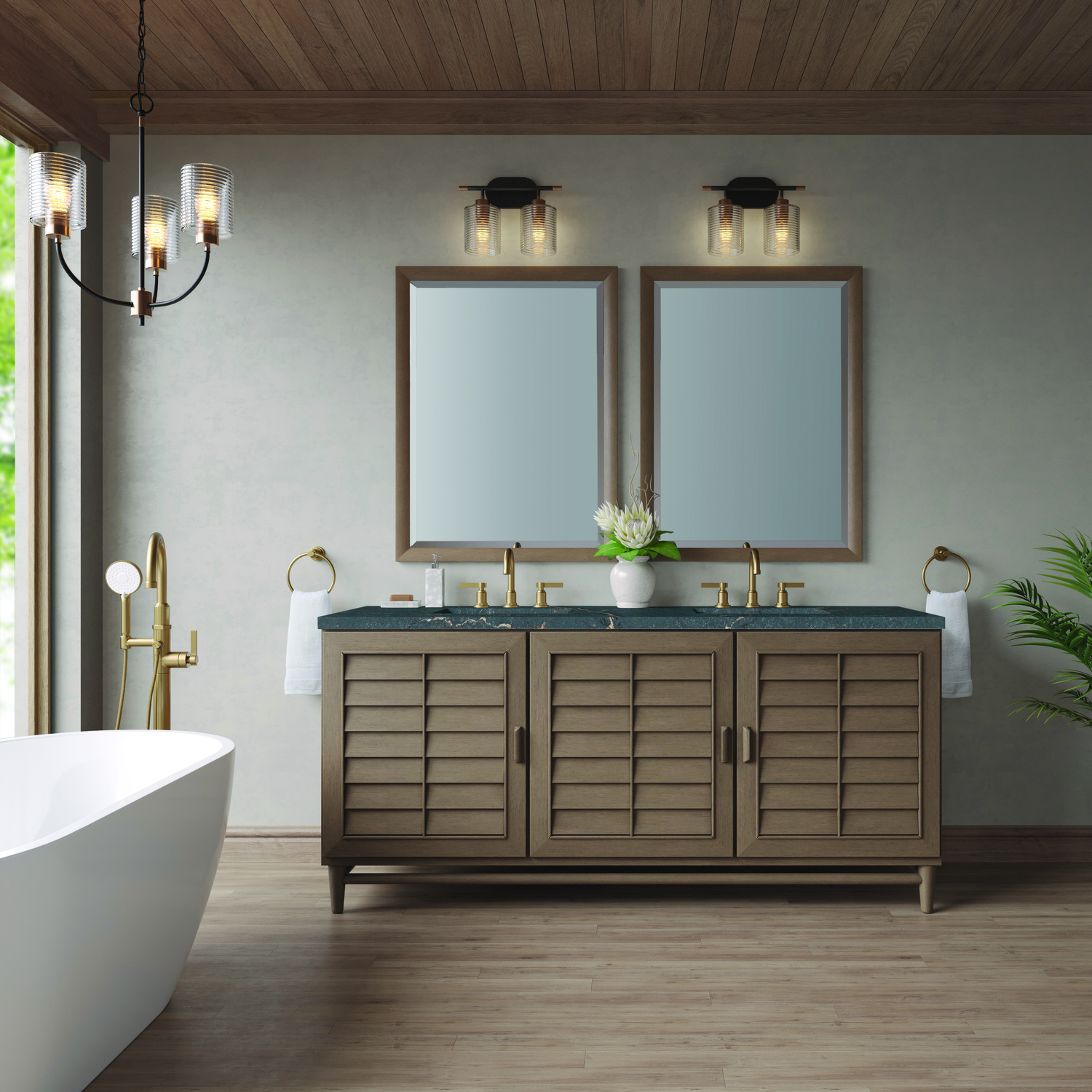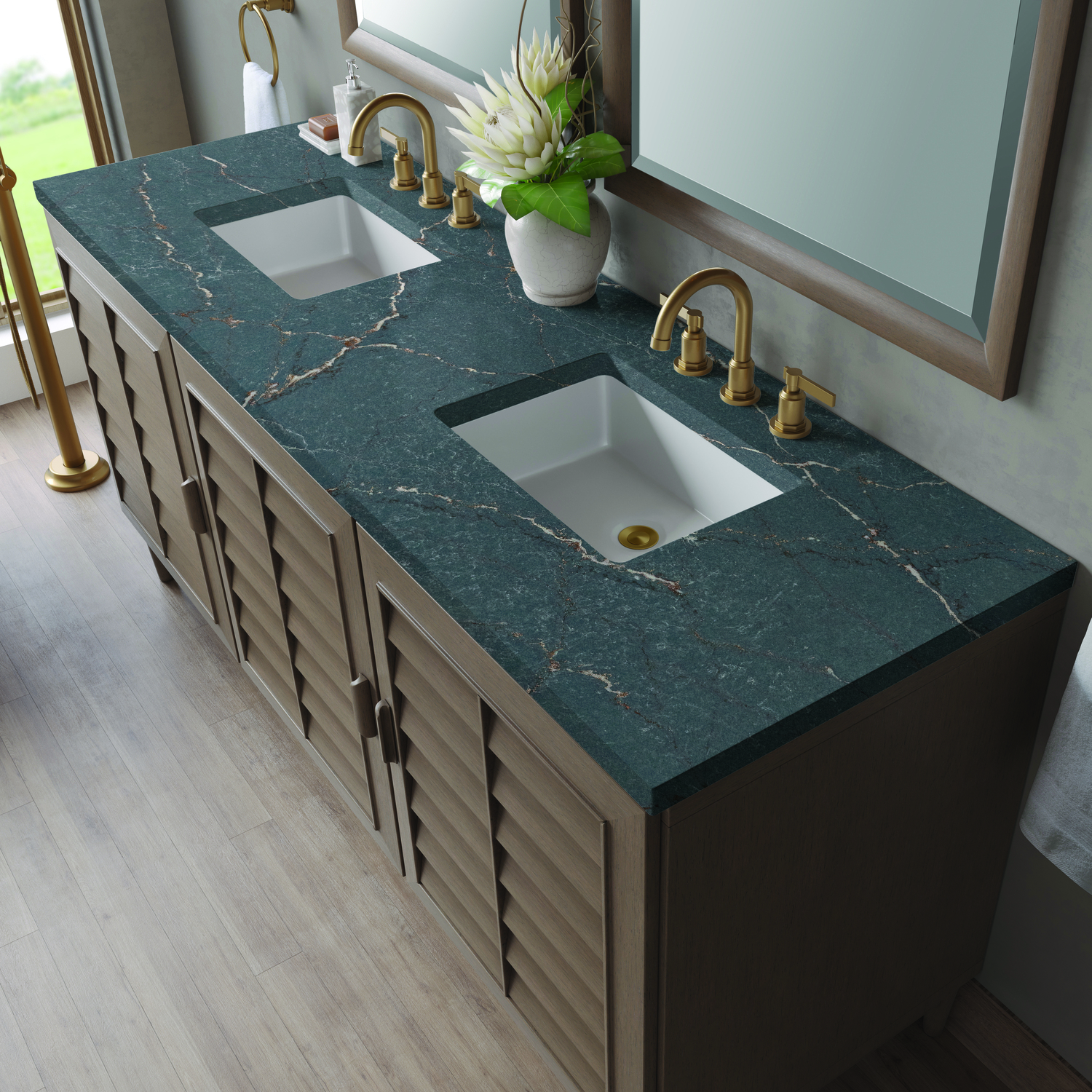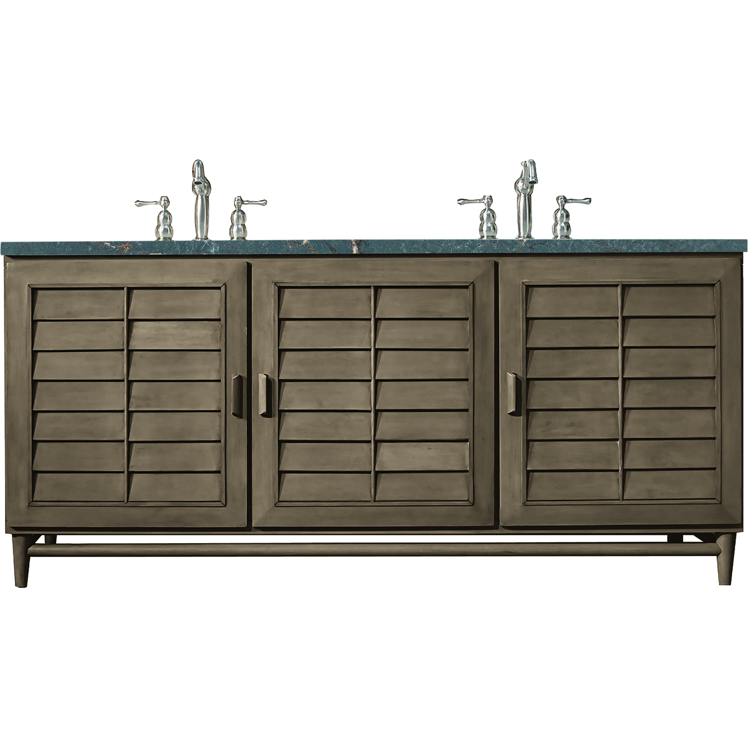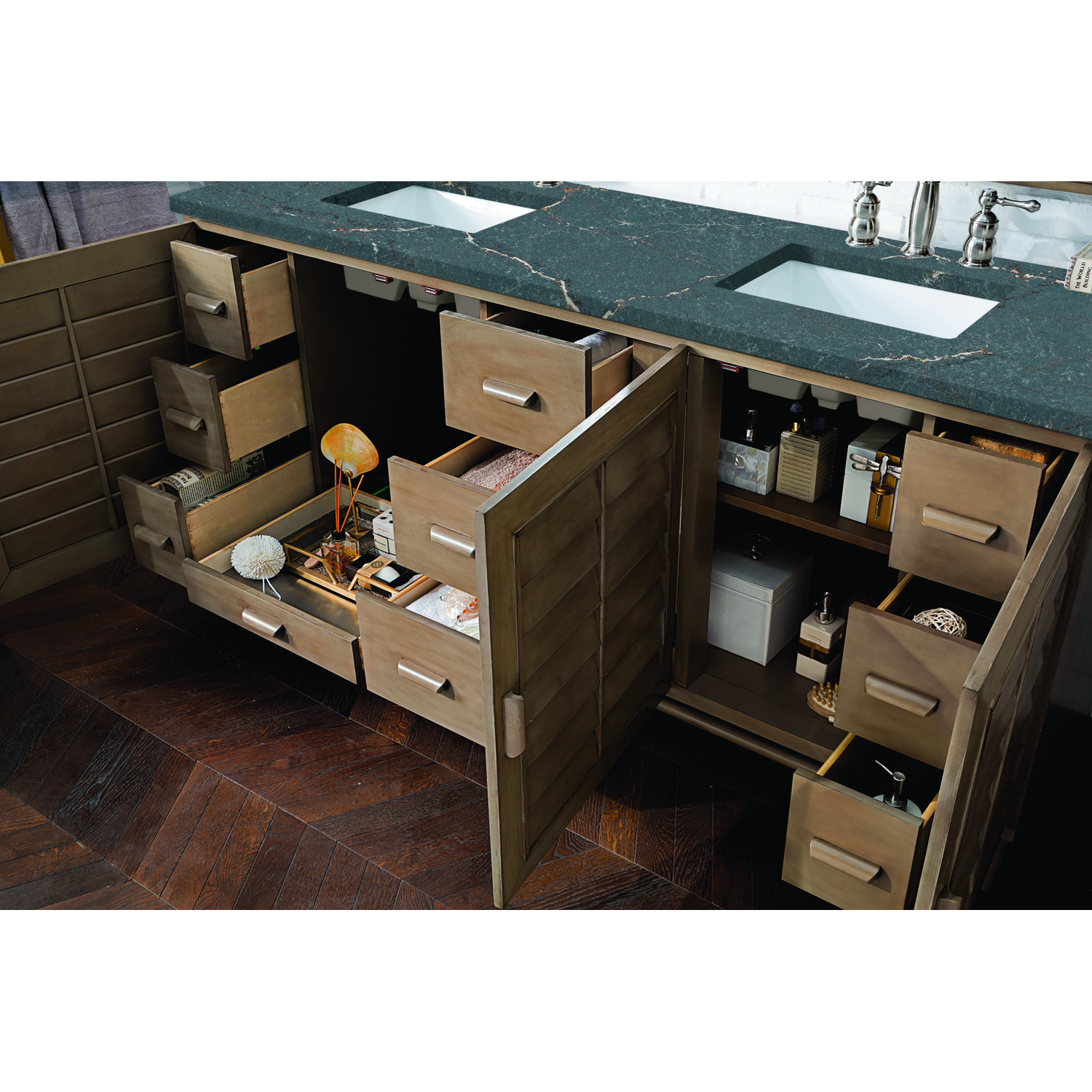 James Martin Portland 72 inch Double Vanity Whitewashed Walnut w/ 3 CM Parisien Bleu Quartz Top, 840108968068, 620-V72-WW-3PBL